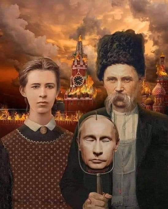 Путін на вилах у Тараса Шевченка і Лесі Українки.