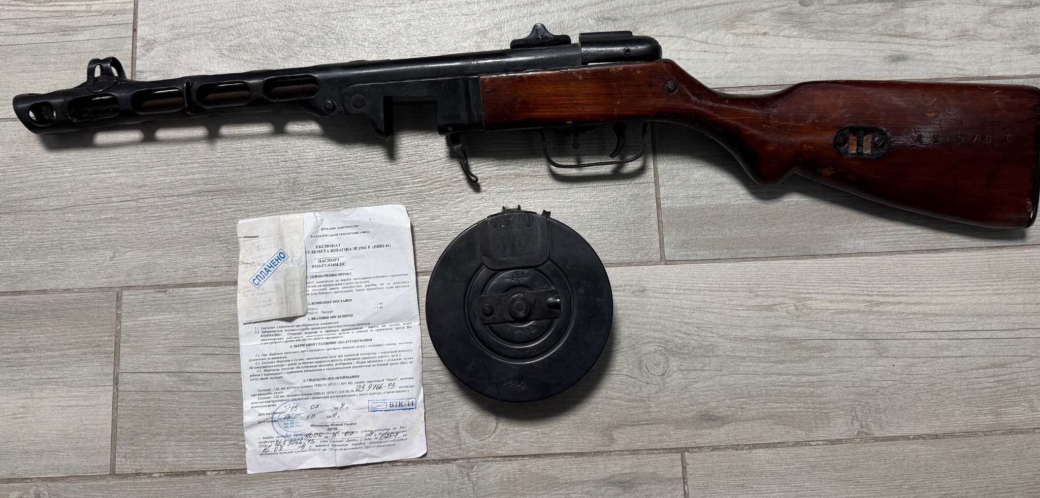 ММГ ППШ 1943 р.в. в доброму стані, рідкого дезактива від Балаклії. В комплекті сам ППШ та документ з чеком про покупку від 2009 року. Якщо потрібні додаткові фото, звертайтесь зроблю.