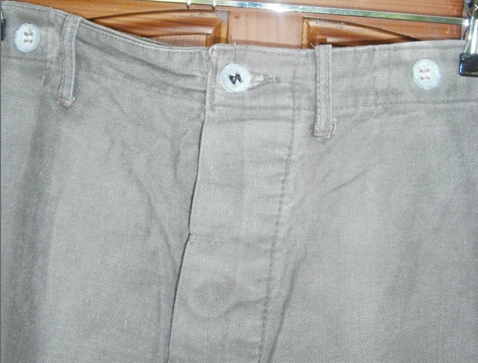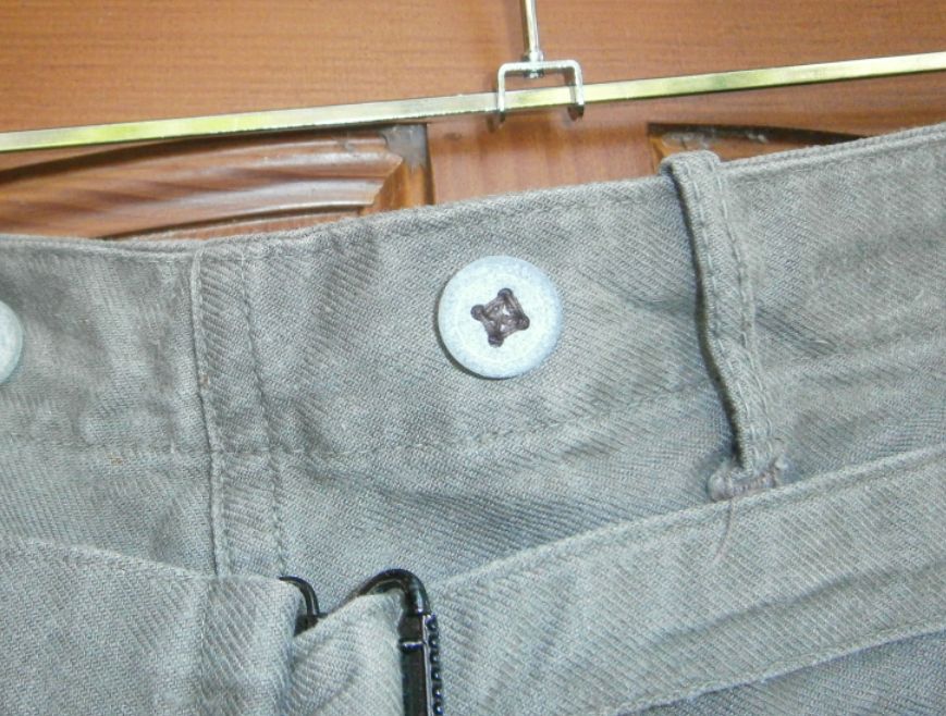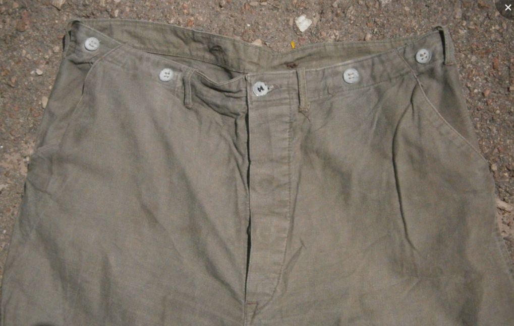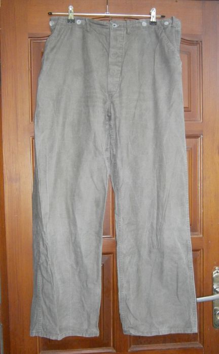 Здравствуйте. Продаю вот такие брюки. Штамп корона и 104, пуговицы цинк. Состояние хорошее, дыр, потёртостей и т.д. нет. Спасибо.