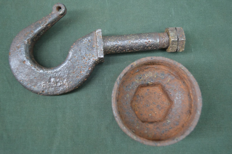 Крюк копаный, произведена механическая чистка. В качестве бонуса - крышка (техническая заглушка либо деталь ступицы). Ссылка на обсуждение https://reibert.info/threads/zapchasti-s-nemeckix-pozicij.1024465/