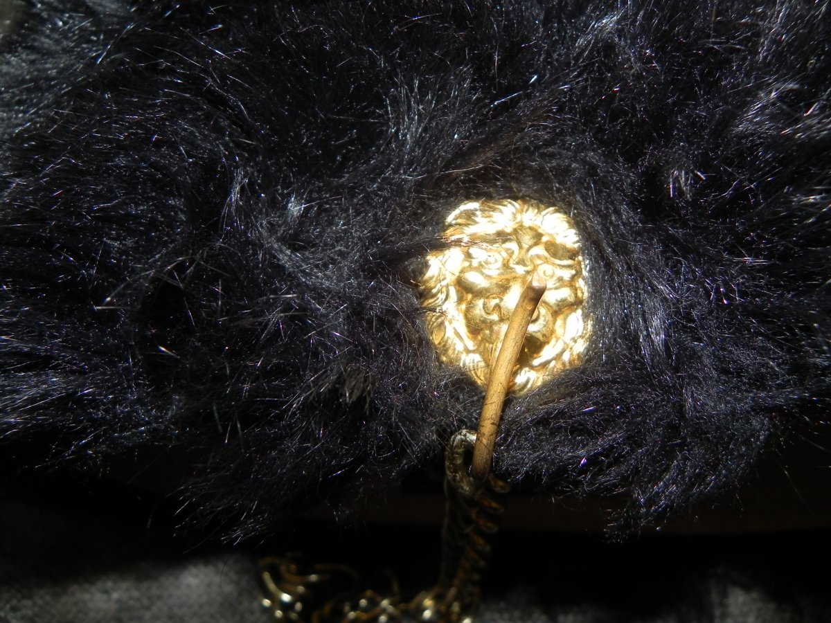 Слева зацеп под цепочку с гербом в виде морды льва.