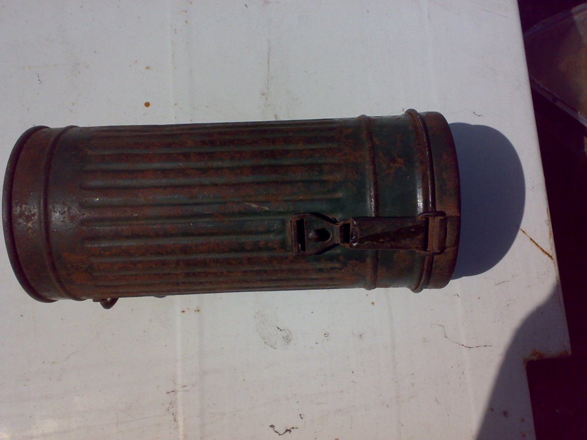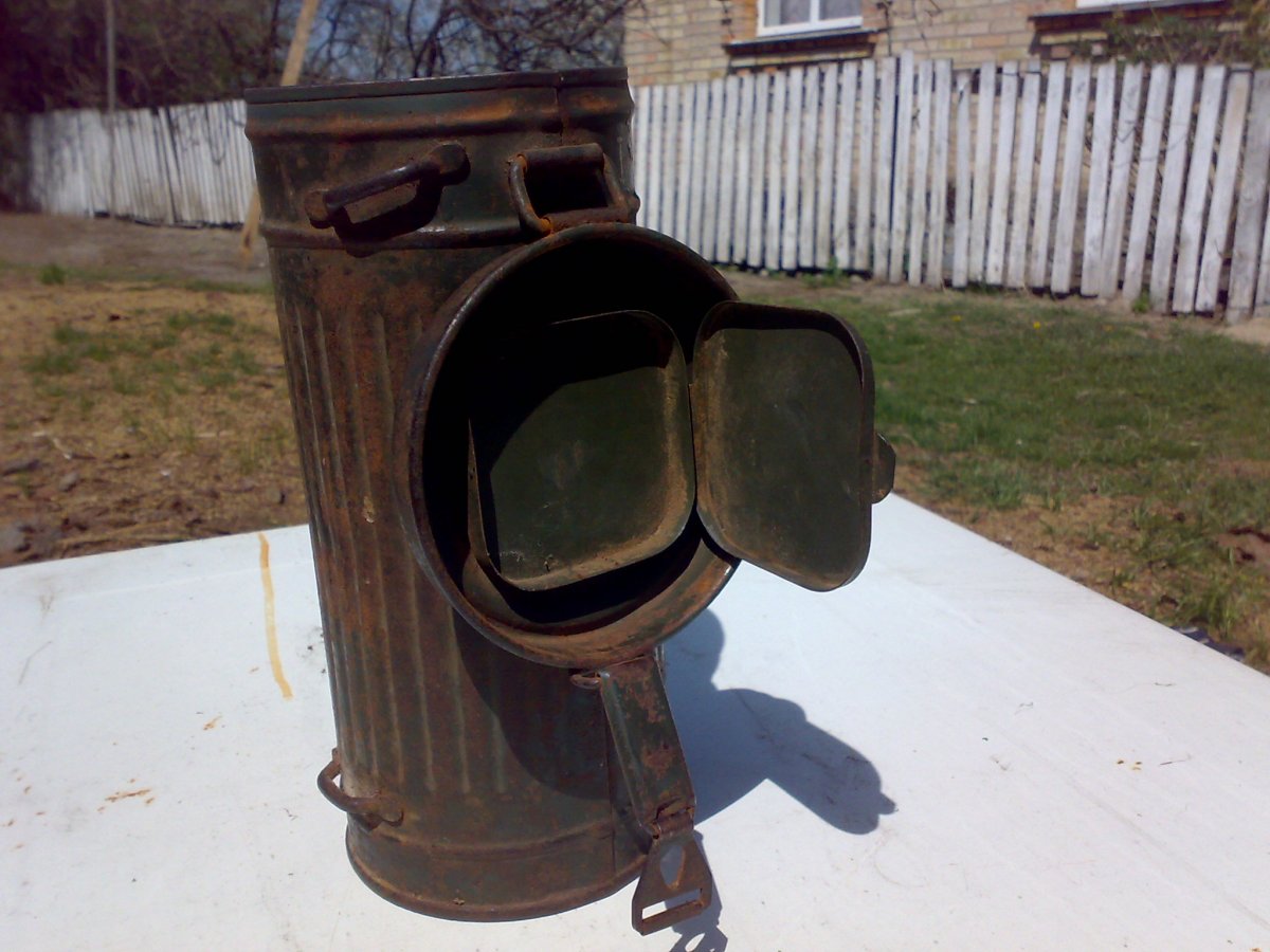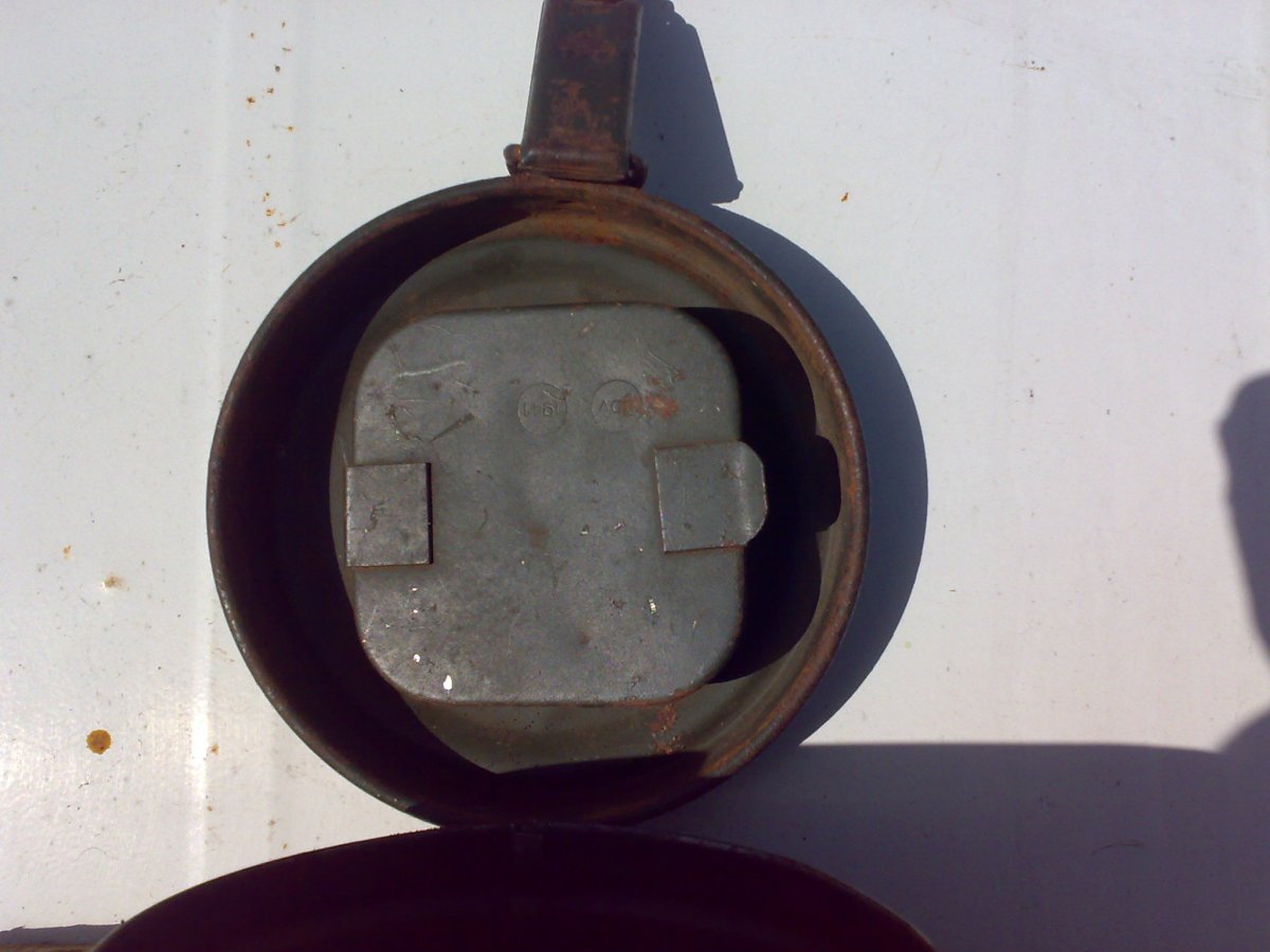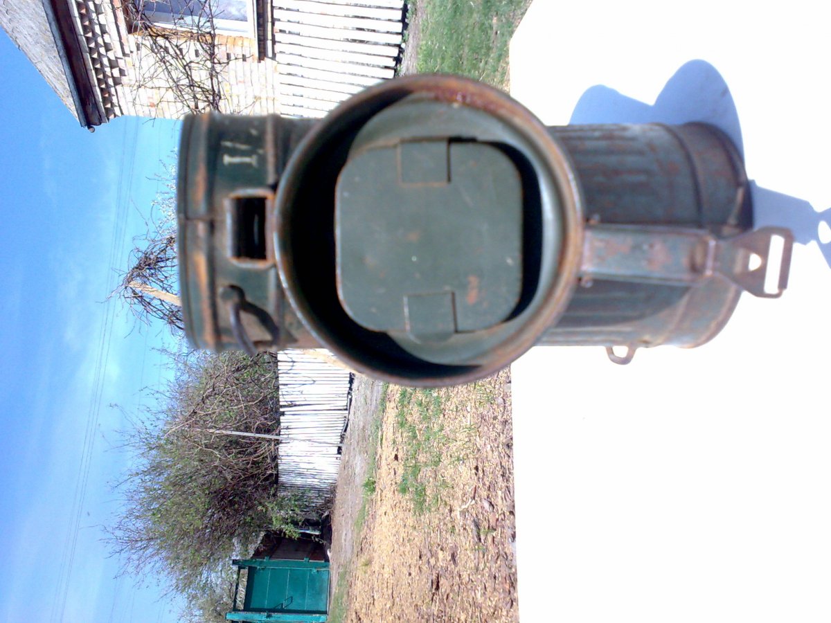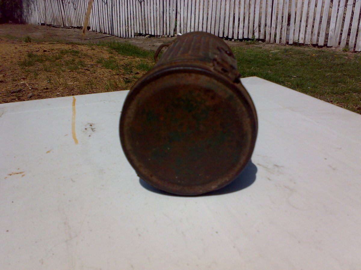 Газ бак. Надпись на внутренней крышке 1941.Не копаный, все пружинки работают.Там где стерта краска тонкий налет ржавчины.В верхней части осталось немного белой краски от надписи, но саму надпись не разобрать. Дырок нет, крепление под защелки на месте.Комплектация по фото.![]()