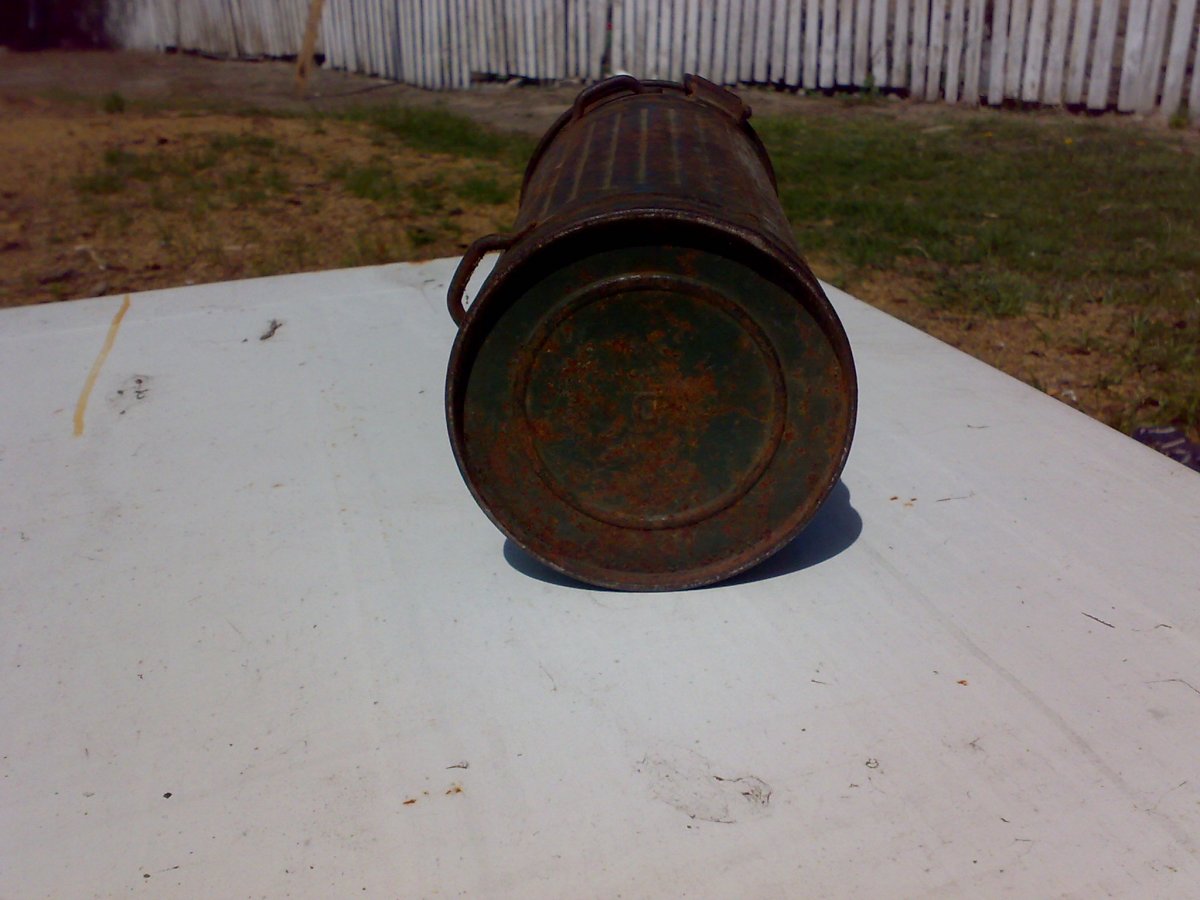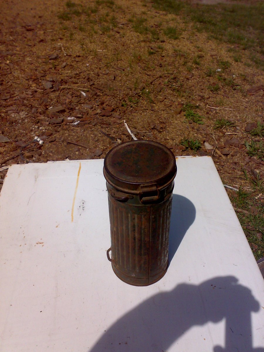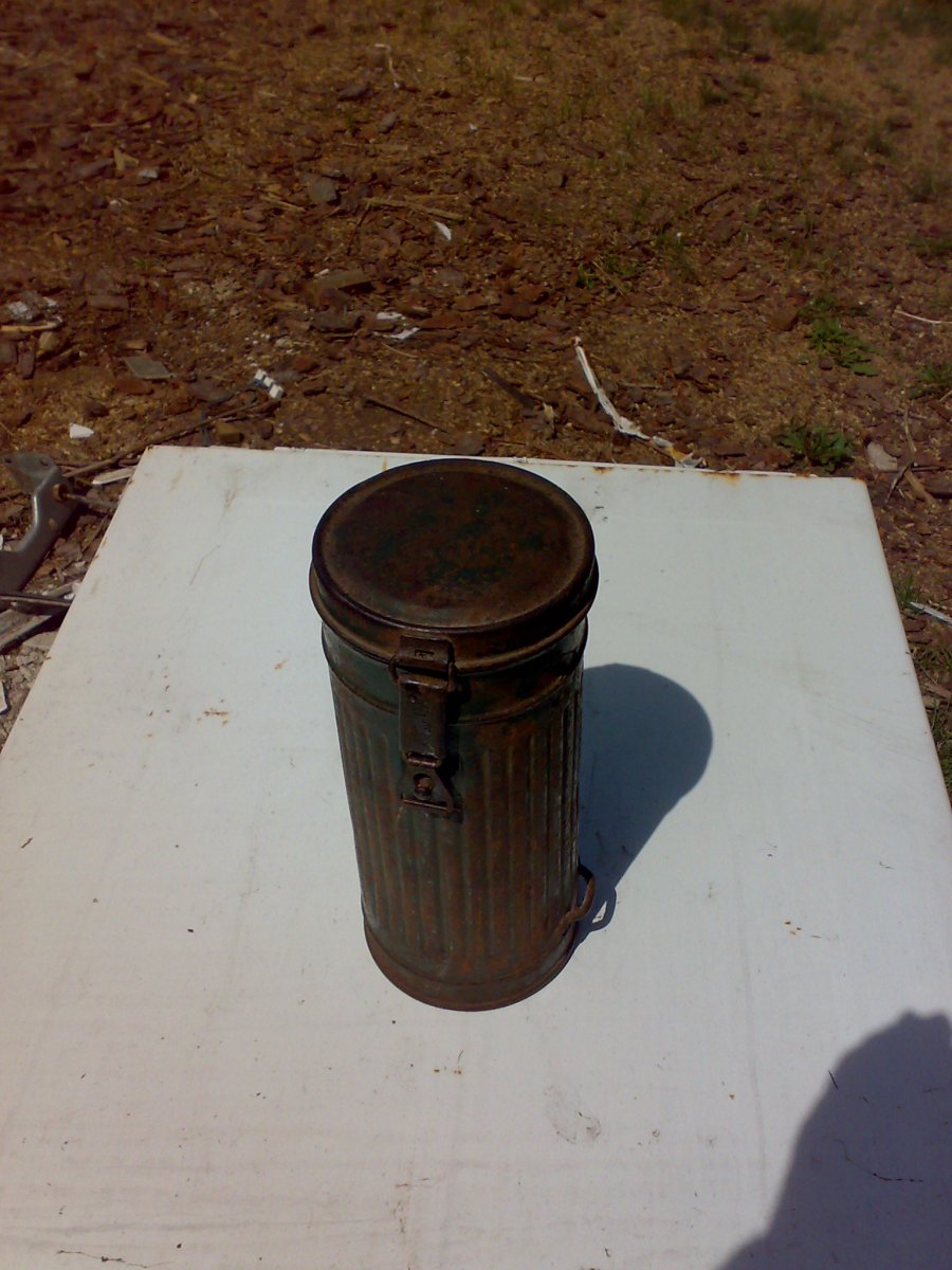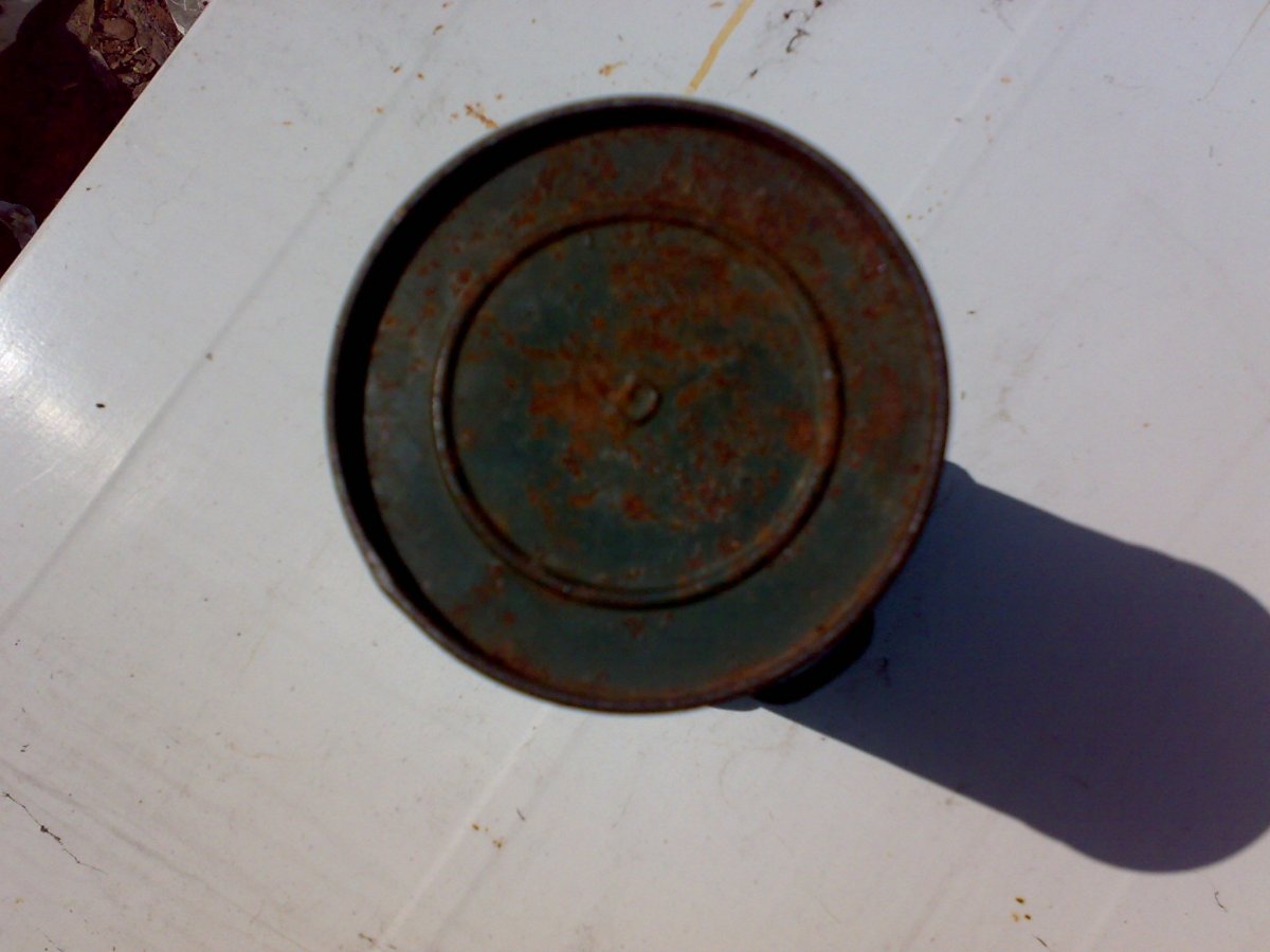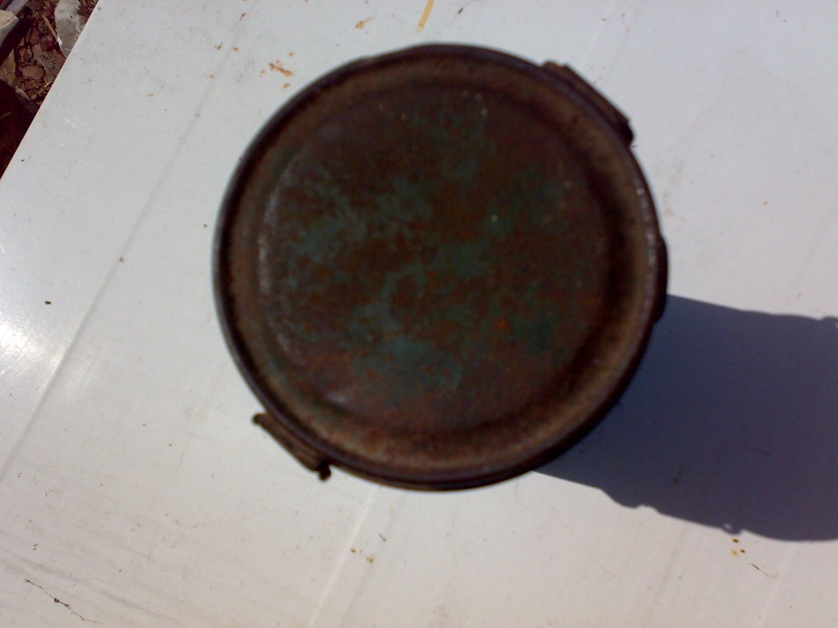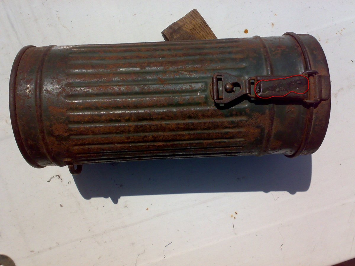 Газ бак. Надпись на внутренней крышке 1941.Не копаный, все пружинки работают.Там где стерта краска тонкий налет ржавчины.В верхней части осталось немного белой краски от надписи, но саму надпись не разобрать. Дырок нет, крепление под защелки на месте.Комплектация по фото.![]()