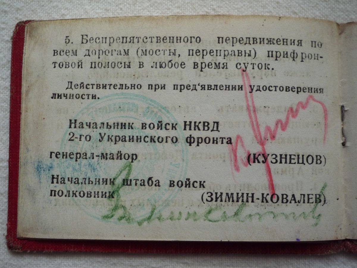 1. Удостоверение НКВД СССР;