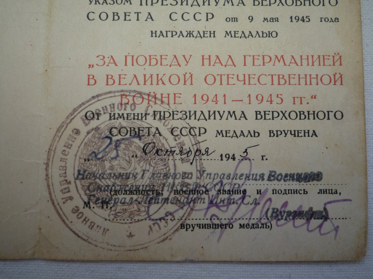 2. Орденская книжка, удостоверения к медалям: "За оборону Москвы", "За ПНГ в ВОВ 1941-1945 г.г.";