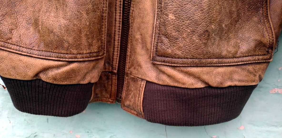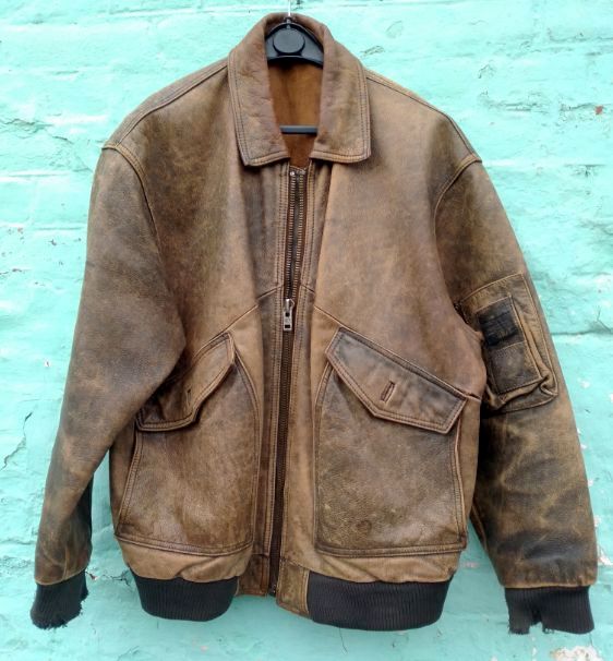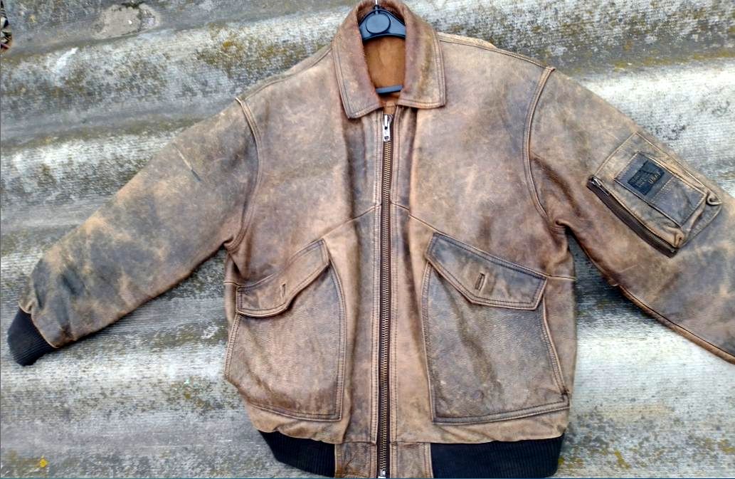 Кожаный бомбер пилота США. Очень качественная кожа. Подкладки нет, манжеты слегка потрёпаны. Размер указан М, на 56-58 р.