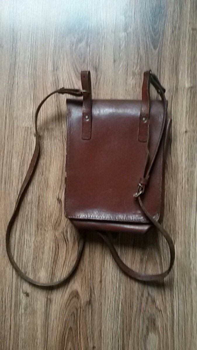 Польова сумка виробництва НДР. Ремінець зношений, "ворота" застібки замінені на стальний дріт. Матеріал шкіра і дермонтин.