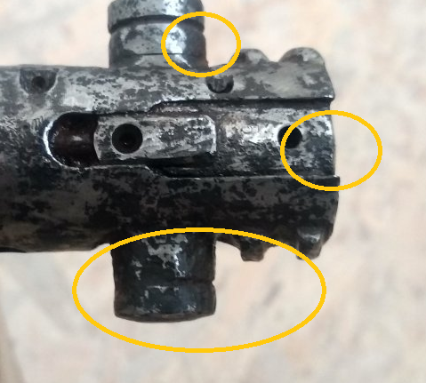 Затвор пулемёта МГ-34 в хорошем состоянии. Была сделана мех чистка без применения кислот.Дальше не разбирался потому что нет опыта в таких делах. Сохранилось много клейм.