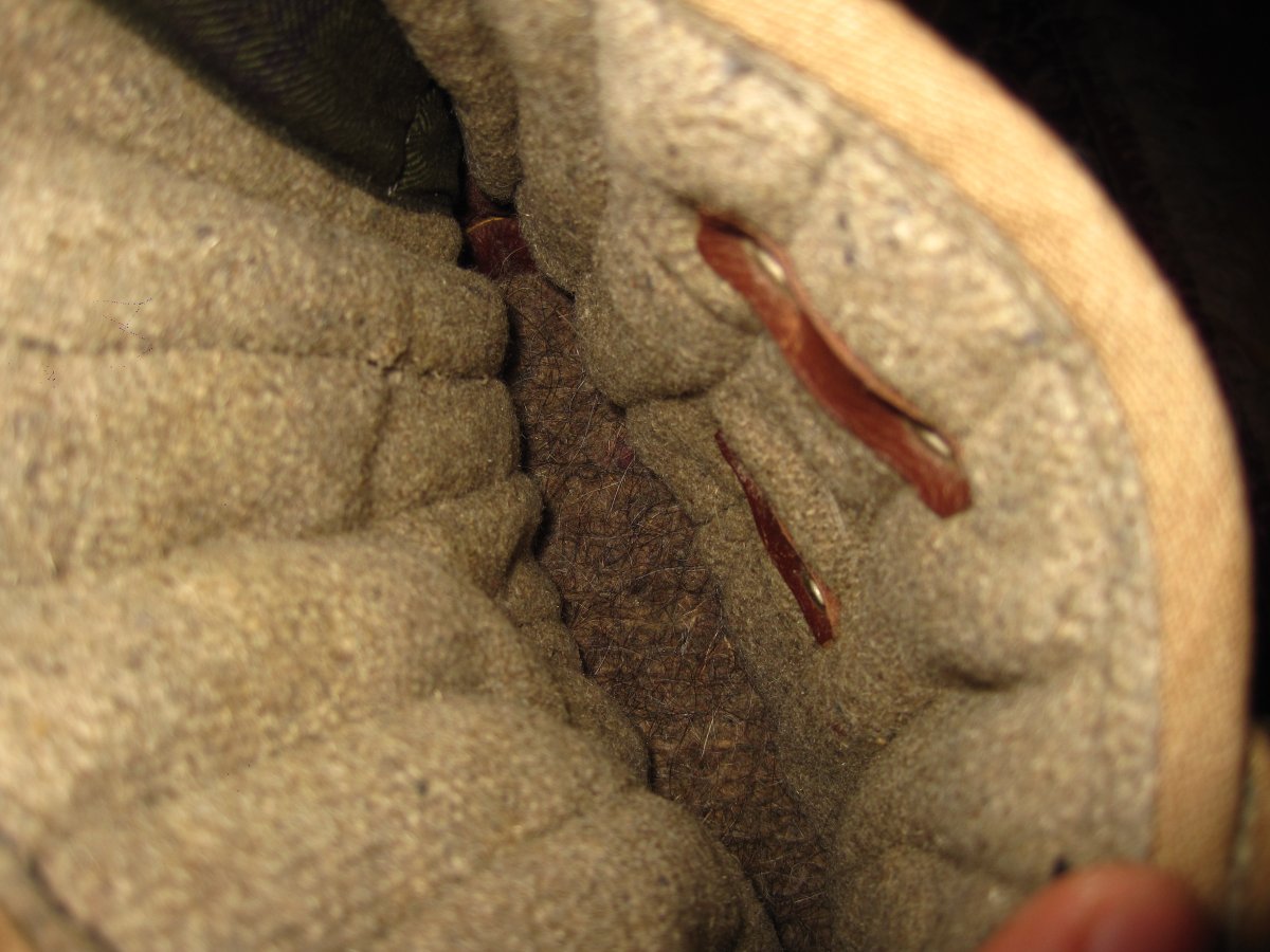 На правом ботинке стелька вынимается(обшита сукном и шерстью)