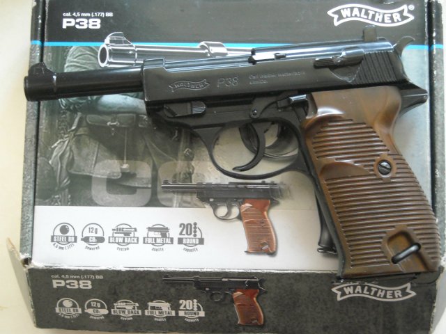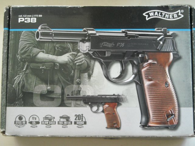 Пневматический пистолет Walther P38 производства компании Umarex (артикул 5.8089) представляет собой 20-зарядный (стальные шарики BB калибра 4,5 мм)пневматический пистолет с Blowback действием. Walther P38 Umarex 5.8089 - это пневматический пистолет с ударно-спусковым механизмом двойного / одинарного действия. Боеприпас покидает канал ствола пневматического пистолета Walther P38 со скоростью 122 м/с (400 fps). Walther P38 выполнен в металлическом корпусе. При выстреле пневматический пистолет Walther P38 Umarex 5.8089 использует энергию сжатого углекислого газа СО2. У Walther P38 Umarex 5.8089 нерегулируемые штатные прицельные приспособления.