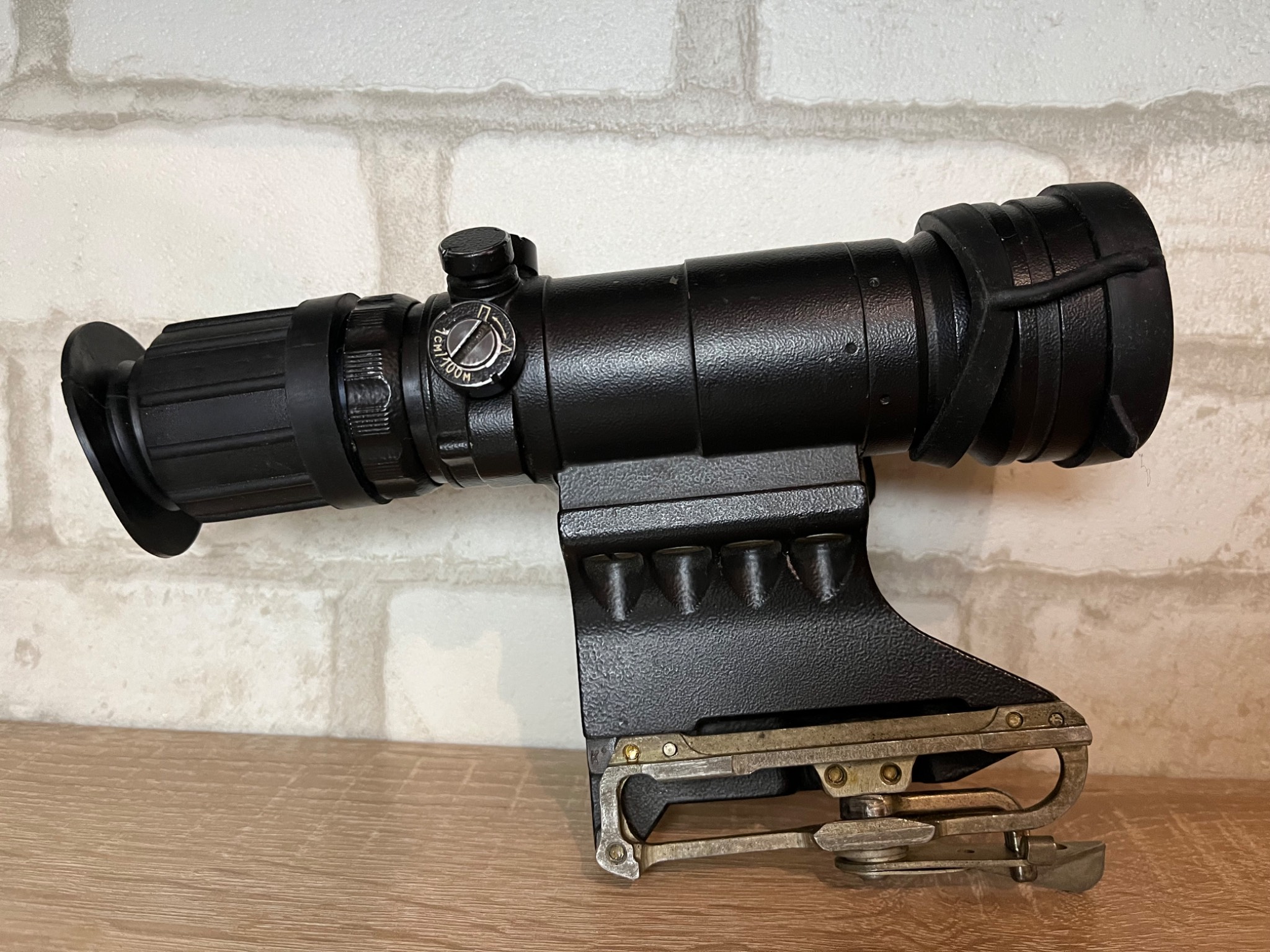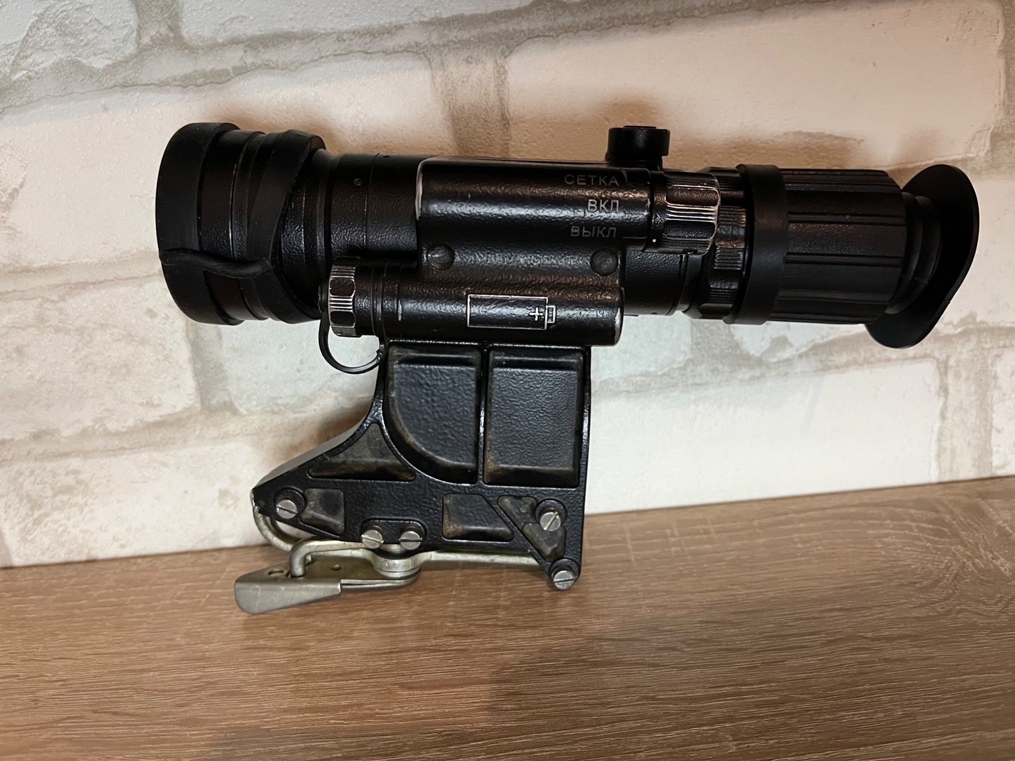 Трофейний нічний приціл 1ПН93 «Малыш» із Серебрянського лісу. Візуально функціональний, вмикається, переключаються режими підсвітки. Нажаль є пару недоліків: ймовірне пошкодження в середині оптики, гумовий наочник замінений.