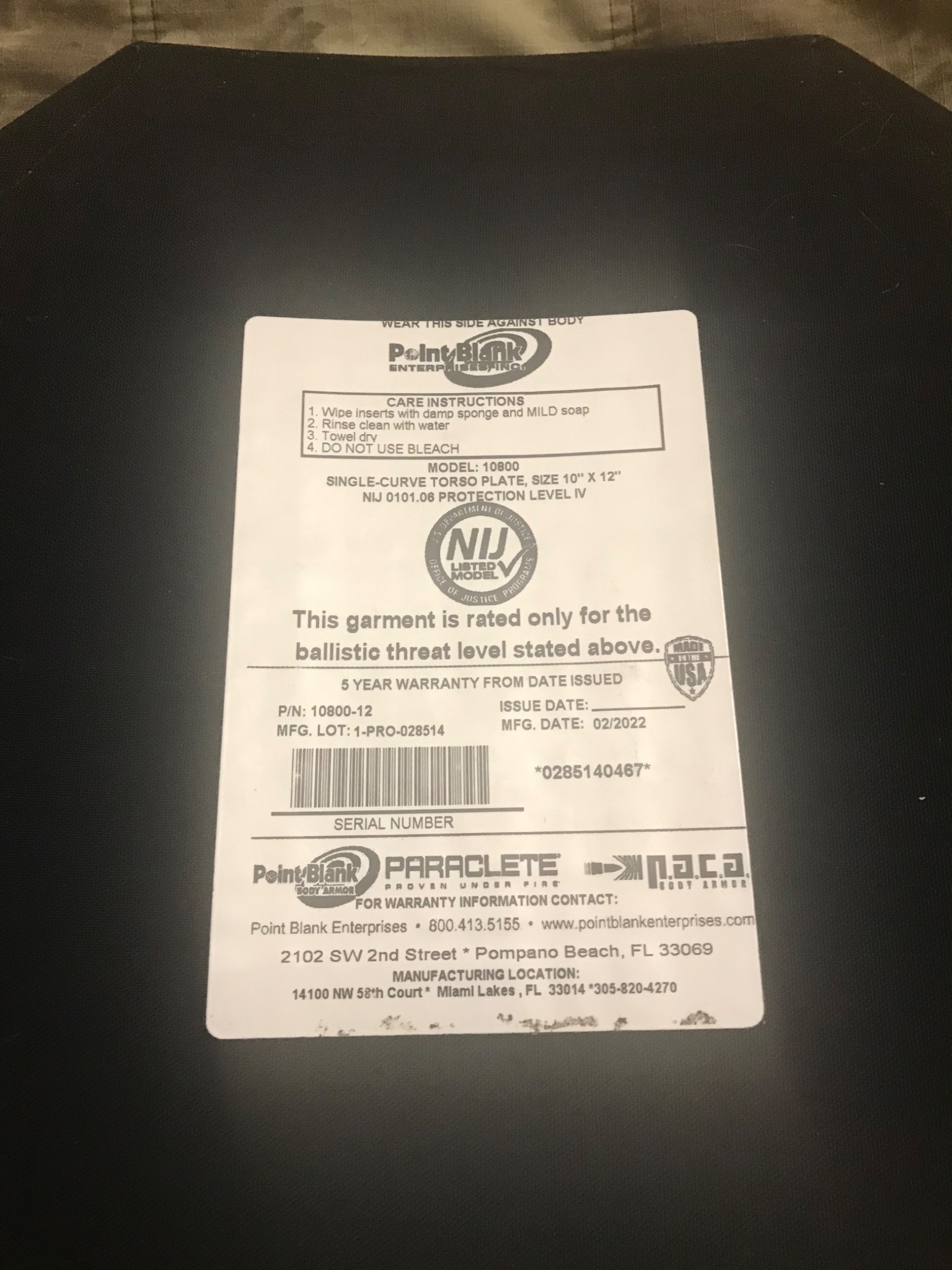 Бронеплита 2 бронеплиты Paraclete point blank. Новий