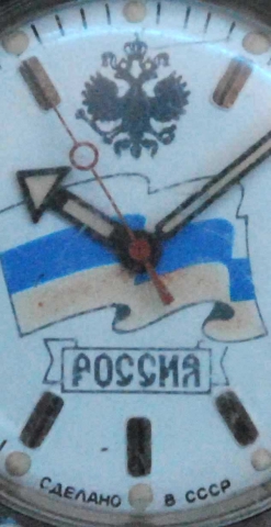 Шаблоны часов "Сделано в ссср" остались, а СССР развалился. На них в 1991-м году и напечатали РОССИЯ.
