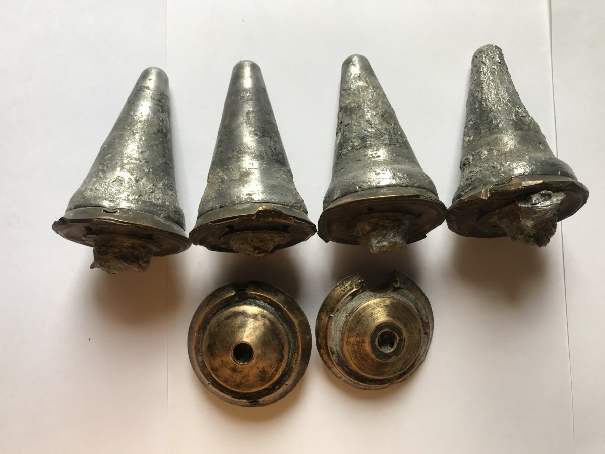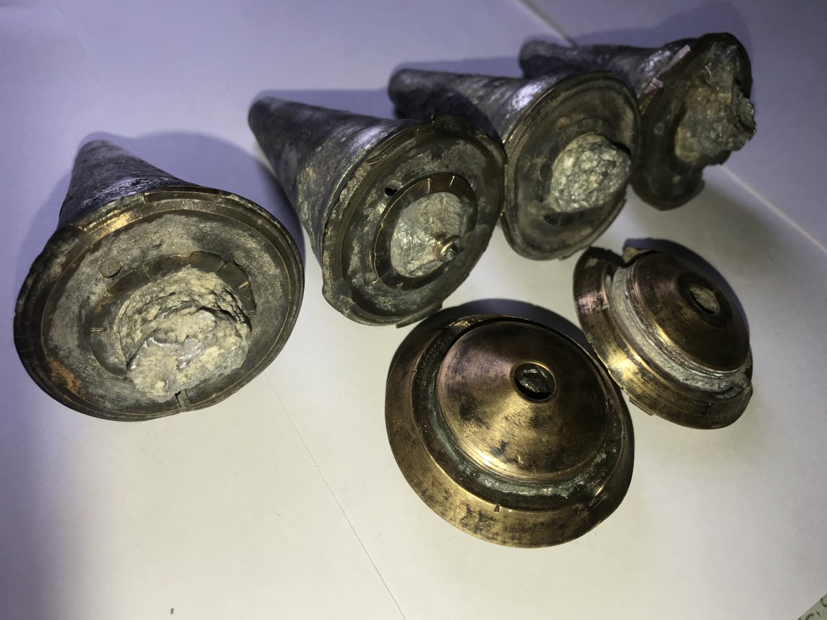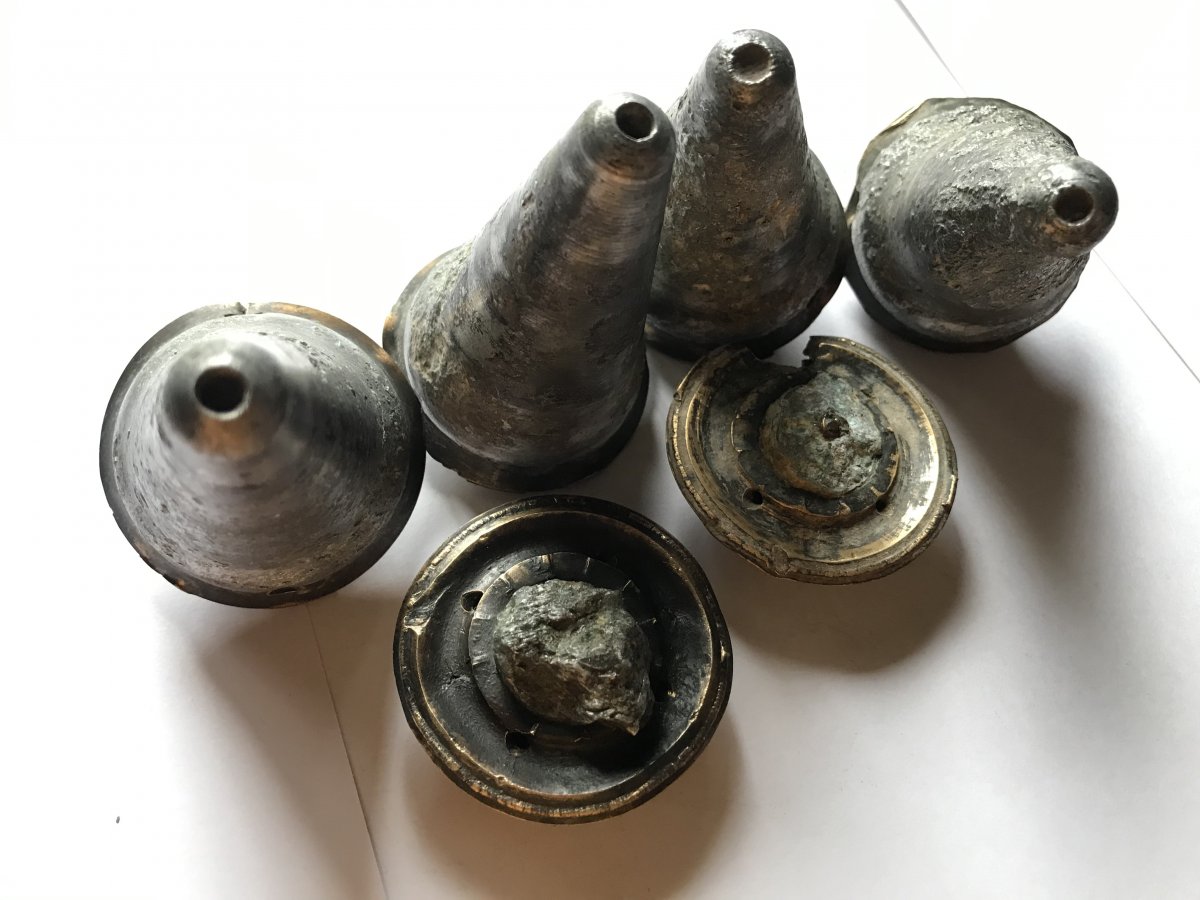 Коп . Почищено . 4 штуки и 2 бонуса . Высота = 90 мм . Диаметр = 57 мм .