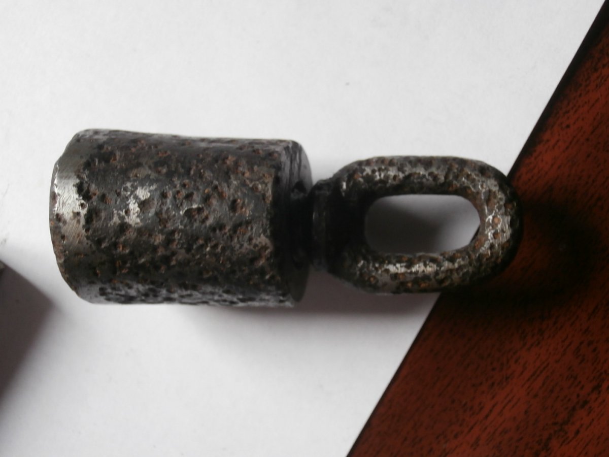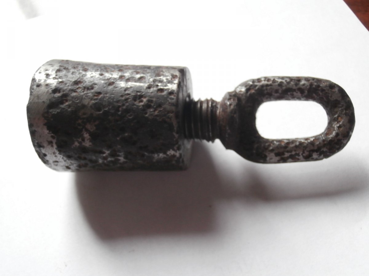 4 предмета - все чищены . коп . накидной ключ на 16 мм , подаватель для магазина , ключ для открывания мясных консервов с Португалии и утяжелитель ( ? )