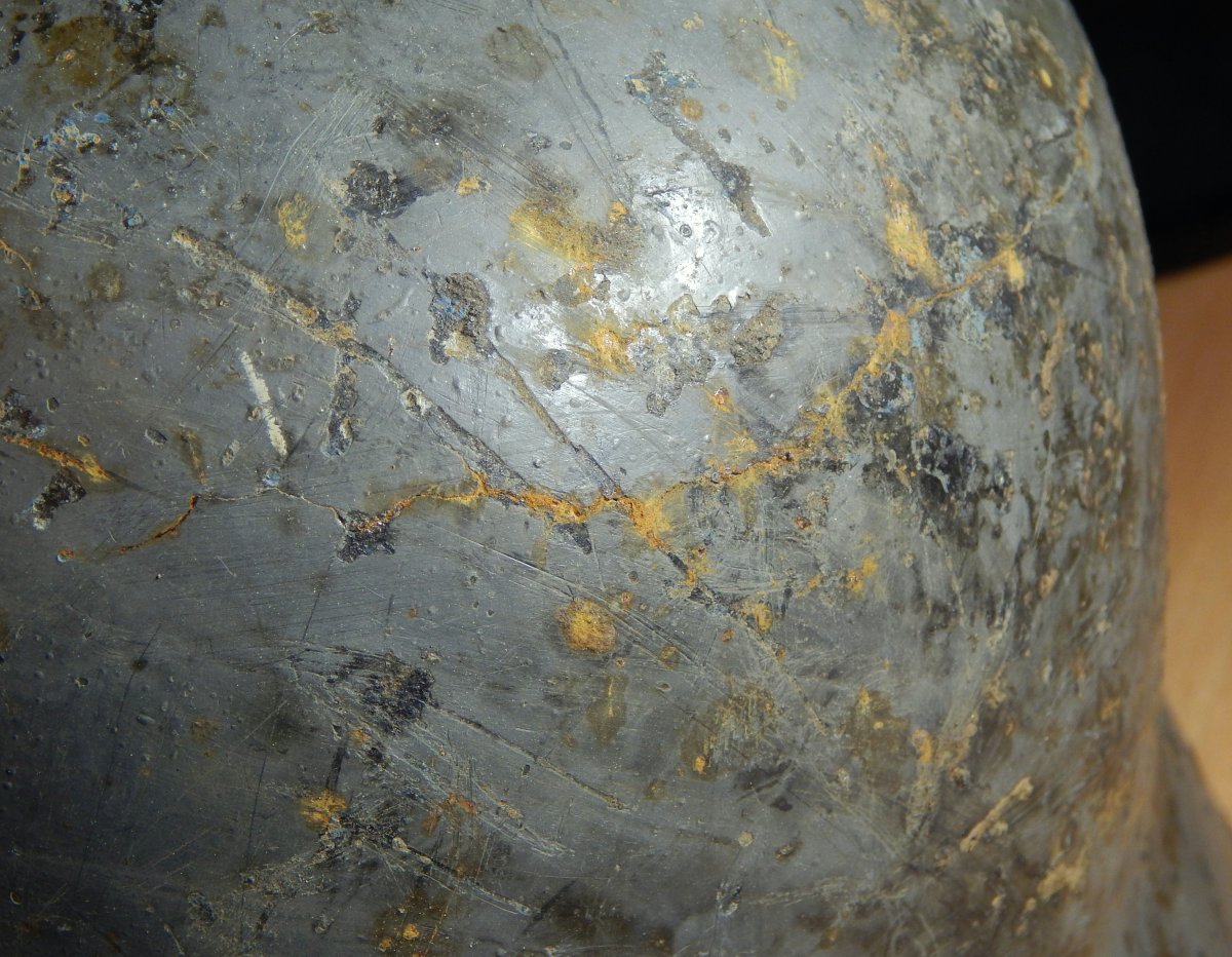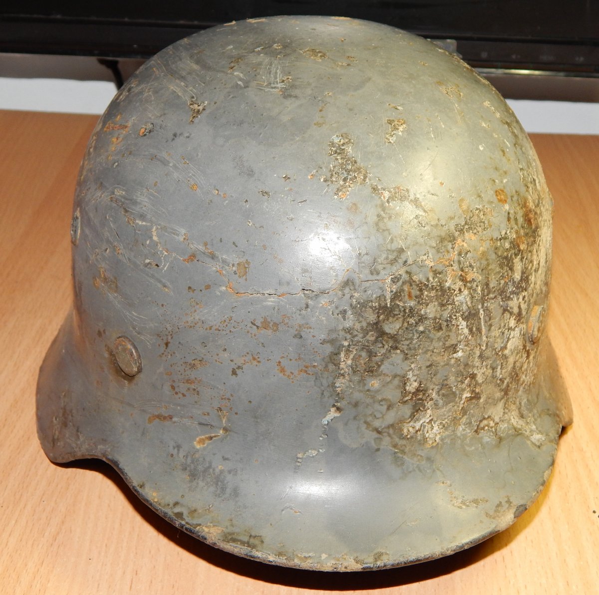 Каска копана,все рідне,змита водою,має дві тріщини,шкіра в хорошому стані-мягка,підписана господаром,під декалью прописні букви(SS)