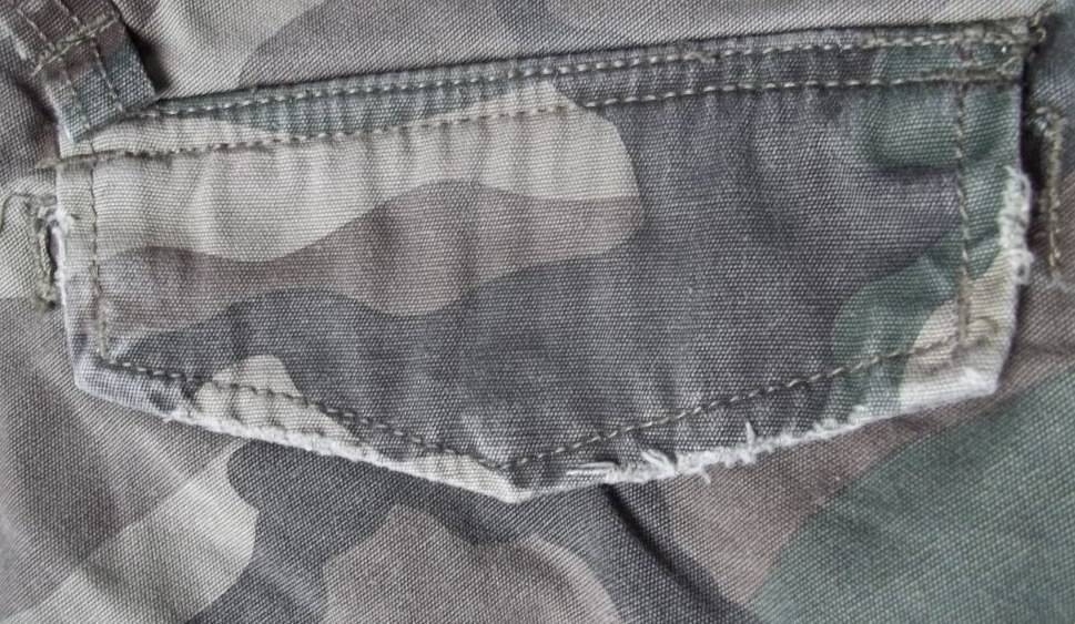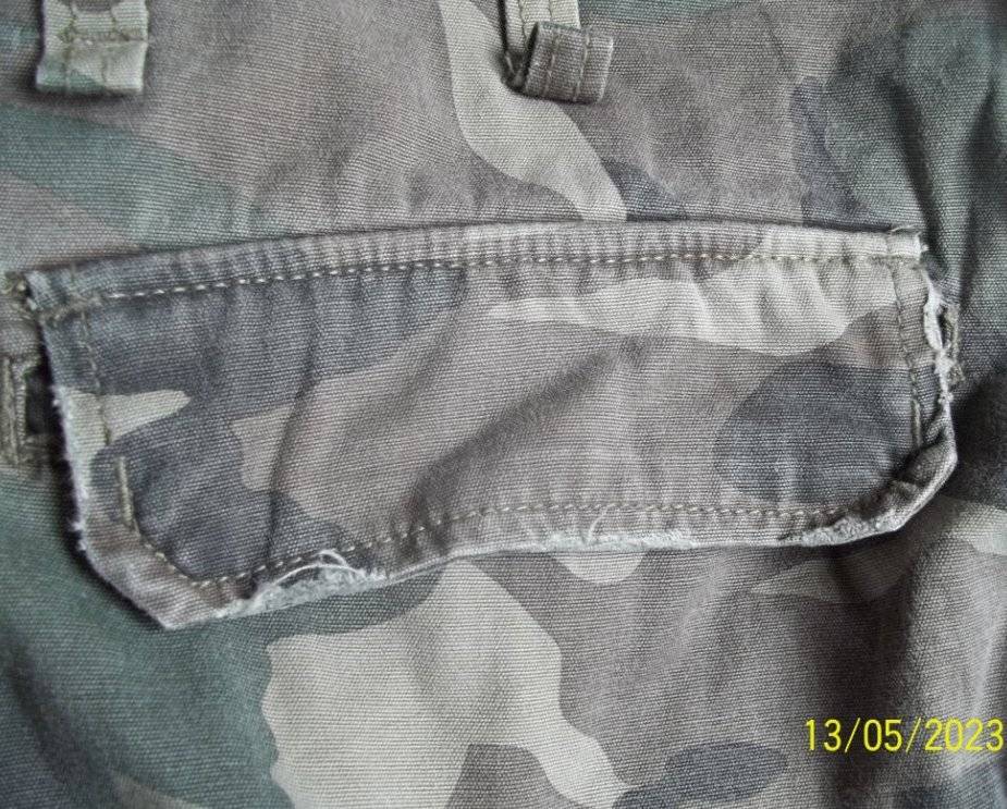 Брюки милитари в винтажном стиле с искусственными потертостями на сгибах. Б/у. Размер ?: полуобхват талии - 45 см, длина: наружный шов - 104 см, внутренний - 76,5 см. Состояние - по фото. Ткань плотная, шесть карманов.