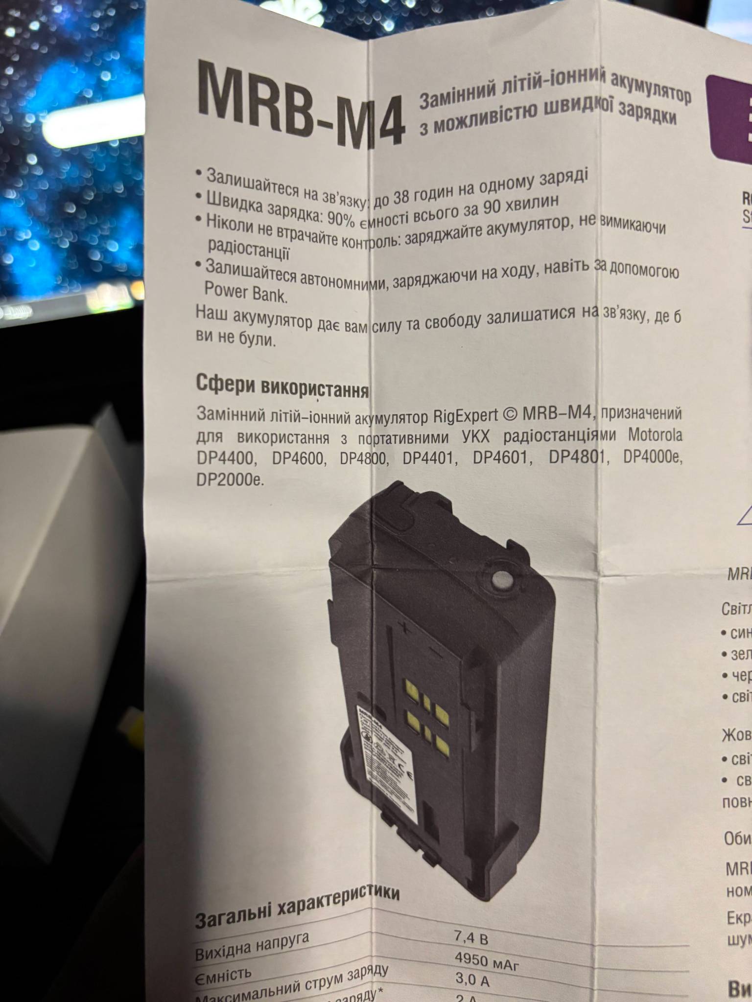 - батарея MRB-M4, кабель швидкої зарядки, інструкція