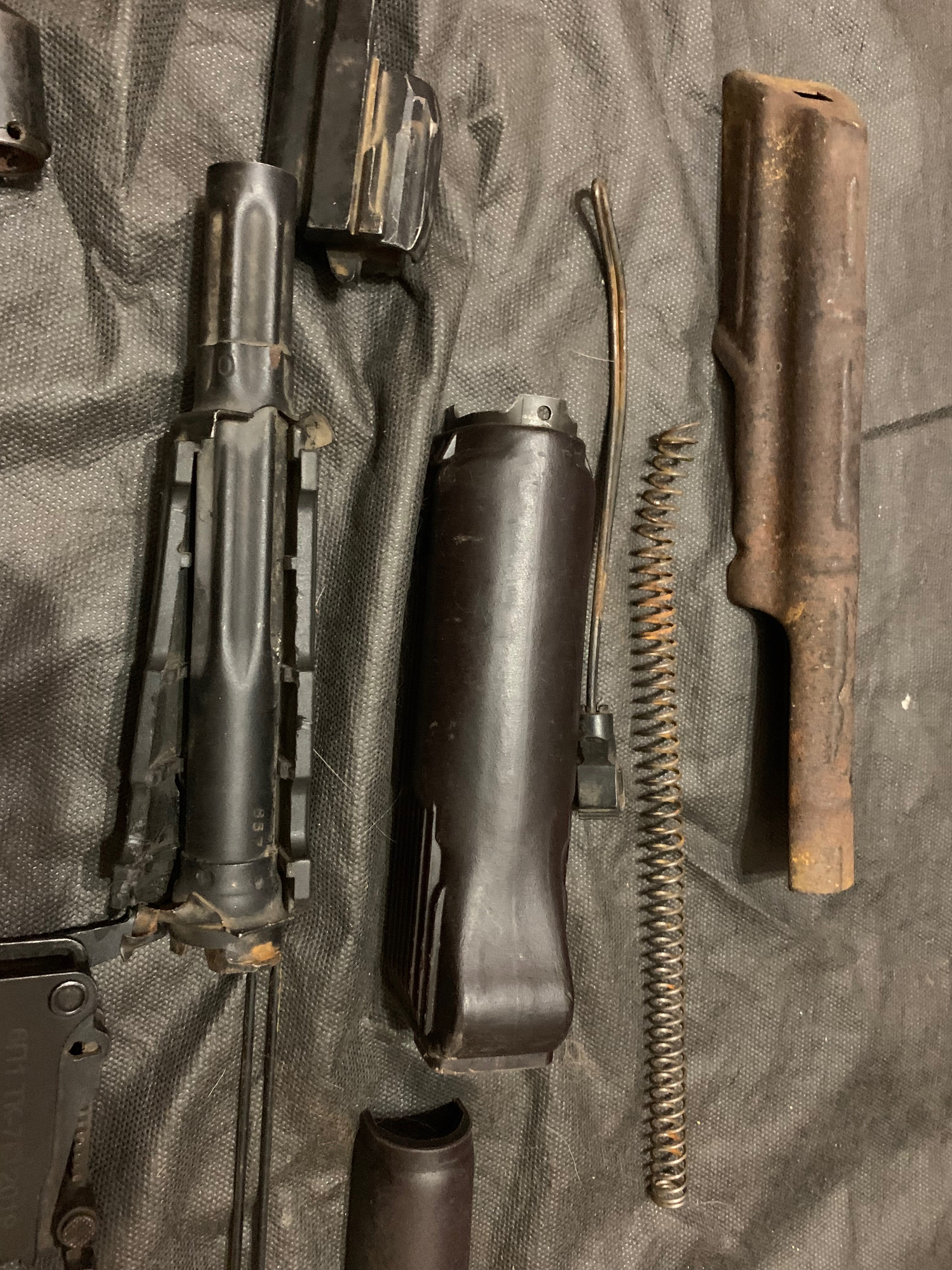 Перетрофей. АКМ с поля боя, по частям, при наличии сварочного аппарата можно восстановить в ммг, усм рабочий, почти все на одном номере. Накладка родная в печальном состоянии. Все, что на фото идёт одним лотом. Цевье, накладка и рукояточки докупались уже отдельно, думал восстанавливать, но обстоятельства изменились. С 1 грн или же блиц.