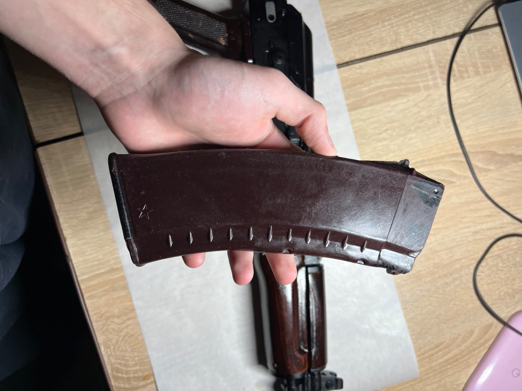 деактив по трубці і тд усе на фото, весь заводський, додатковий деактив не роблю, на фото і так все видно, та зрозуміло що нічого від заводу не чипалось. Магазин спилений рідний, ммг патрони нажаль не стануть