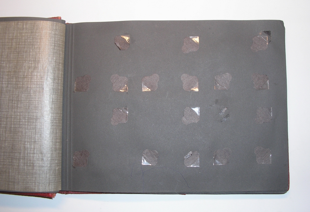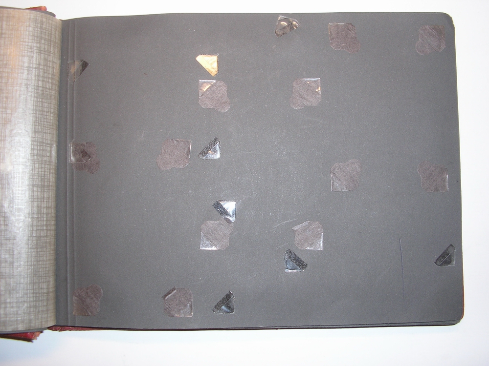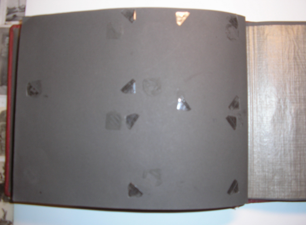 Наиболее повреждены черные гуммированные фотоуголки (или отсутствует, или оторвана перемычка для фиксации снимка), поэтому к альбому прилагается пакет черных фотоуголков, аналогичные подлежащим замене (хотя произведены не в Германии)