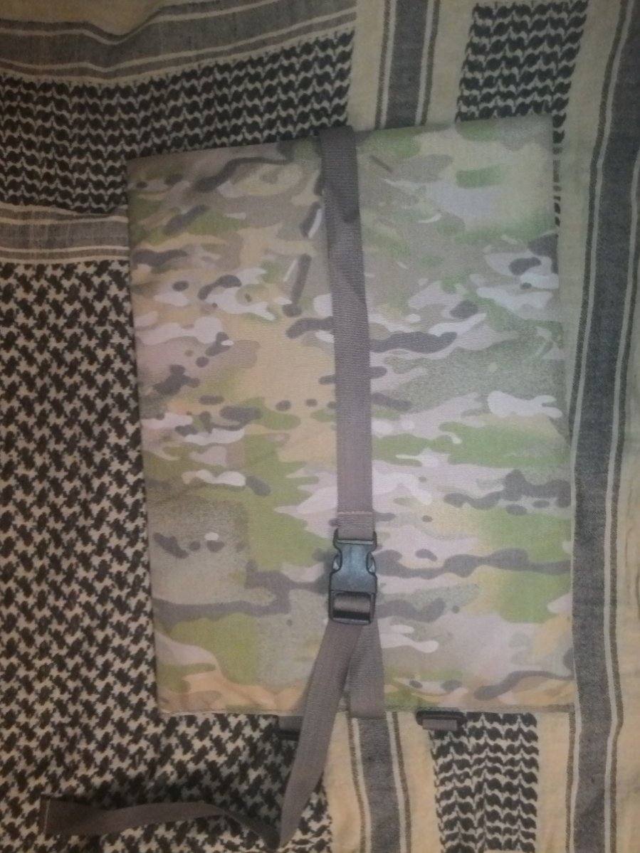 Карімат -піддупник. Окрім основної стропи кріплення має додаткові, для фіксації чи на поясі, чи на жилеті.