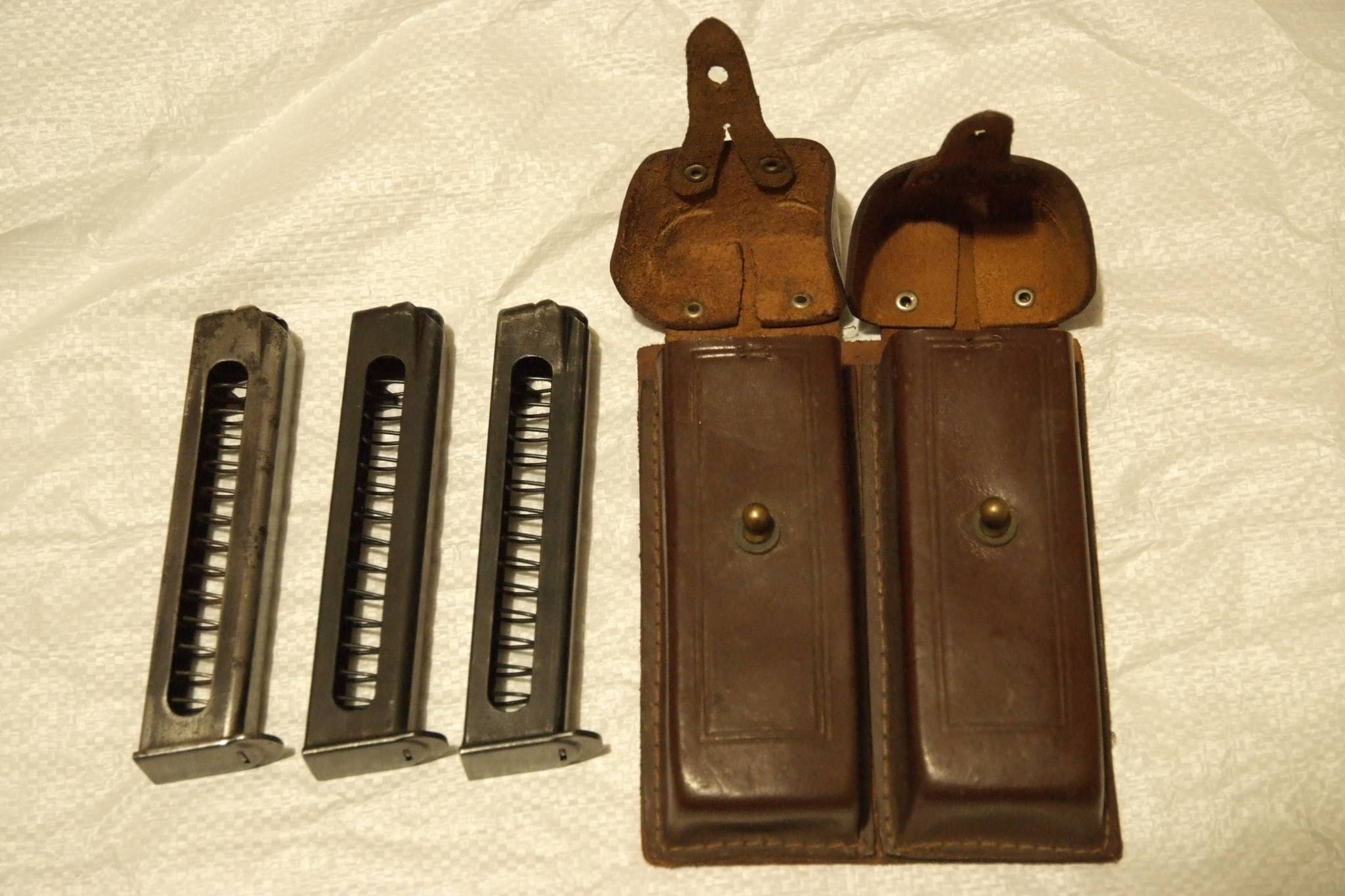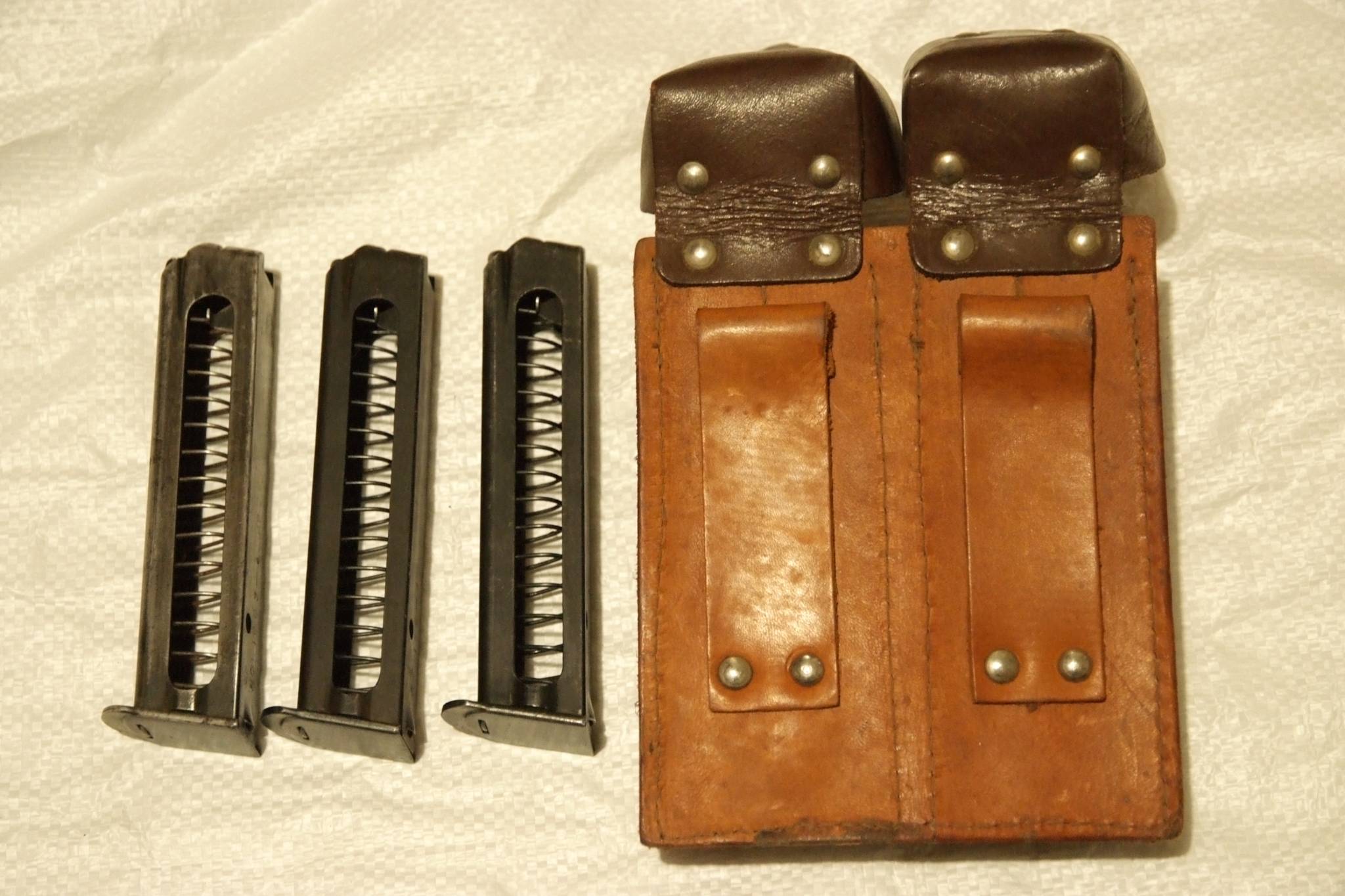 К АПС комплект. Подсумок магазинов ранний, в хорошем состоянии и 3 магазина. 2 б.у., в хорошем состоянии, 1 поюзаный, стёрто чернение. Все работоспособные, без функциональных изъянов. Смазаны консервирующей смазкой.