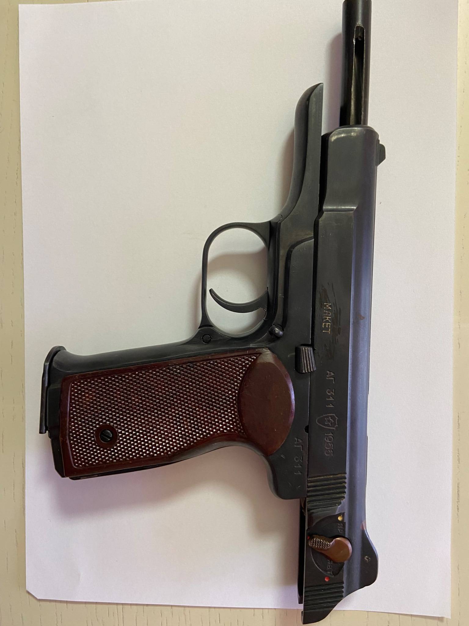 ММГ пистолета АПС изготовлен с сохранением внешнего вида оружия и возможностью производить взведение подвижных частей макета и их спуск нажатием на спусковой крючок.