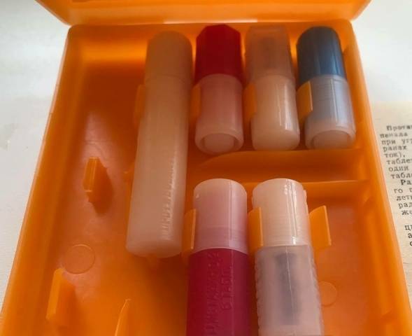 Радіозахисний засіб № 1 (цистамін 0,2 г) — 2 пенали малинового кольору на 6 таблеток кожний;