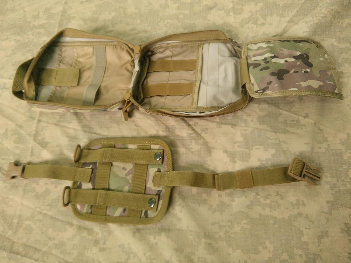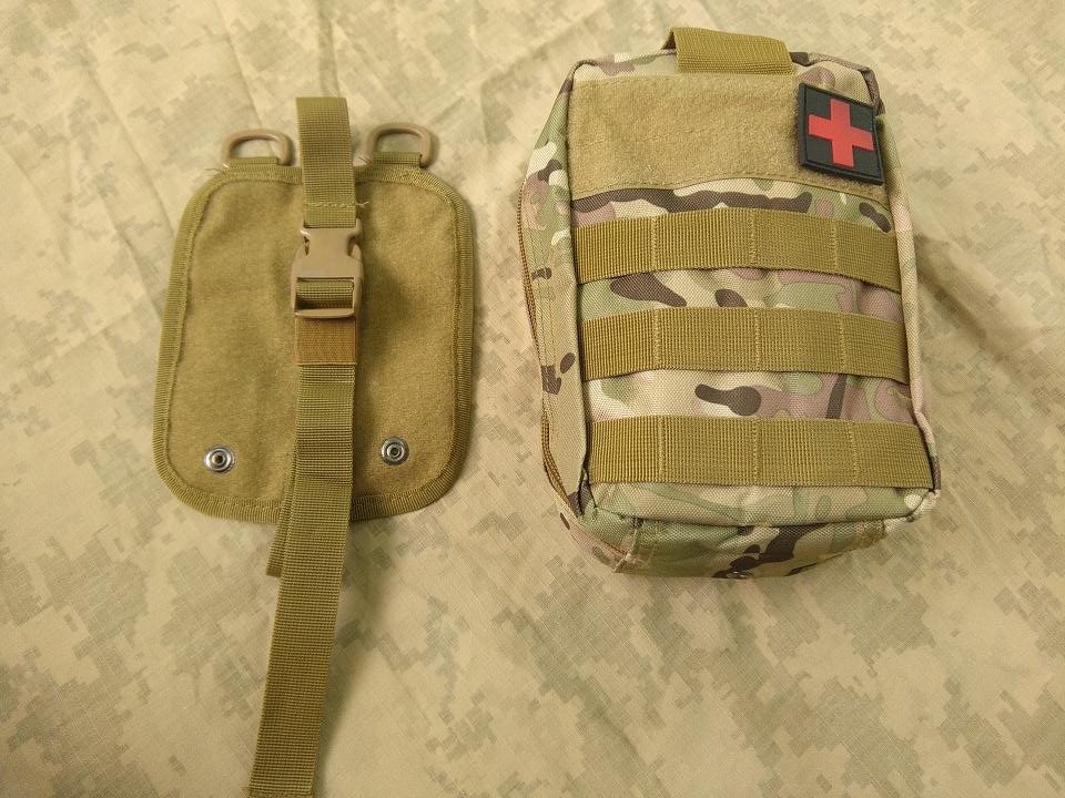 Отличный вместительный аптечный подсумок из плотного и надежного материала. Сам подсумок крепиться на специальную платформу с помощью липучки велкро, а платформа крепиться на стандартное крепление системы MOLLE. Такое решение позволяет решить сразу две задачи - надежно закрепить аптечку на разгрузе/рюкзаке и при этом очень быстро снять ее использовать или передать товарищу, чего нельзя сказать о стандартных подсумках. Так же платформа имеет доп. крепления в виде D образных полуколец. На передней стороне подсумка имеются три стропы MOLLЕ, полоса велкро а так же медицинский патч, который идет в комплекте.