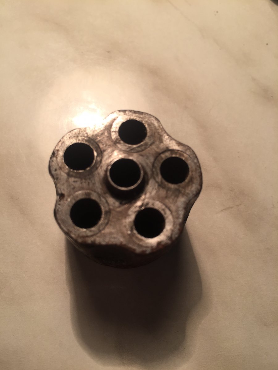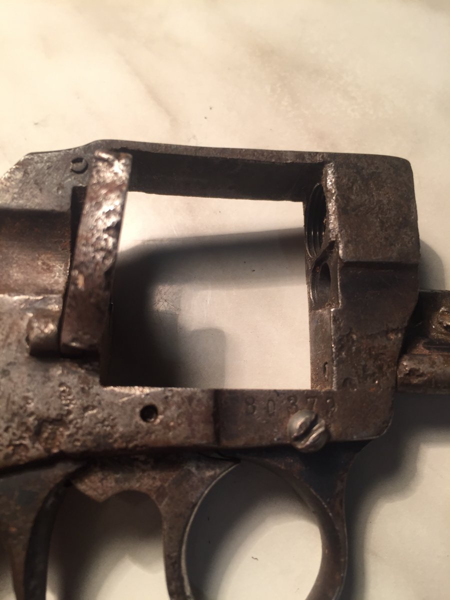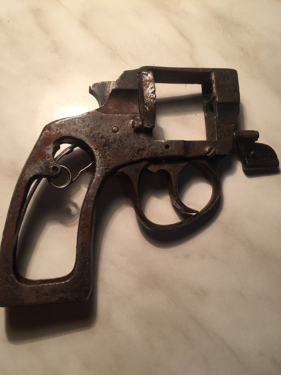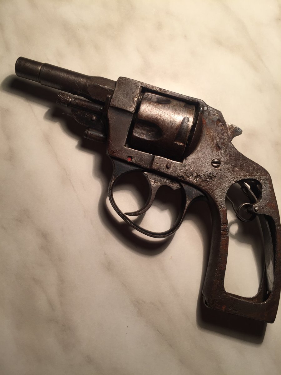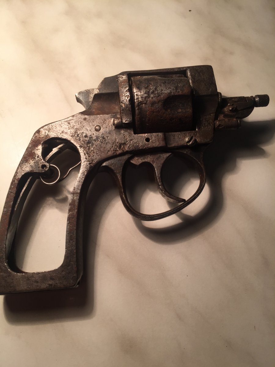 Различные модели этой фирмы выпускались в ФРГ как до военного времени, так и после 2 й мировой войны. В конструктивном отношении стоят в одном ряду с многочисленными разновидностями ,, Бульдогов ". В барабане втулки,накладки новодел. По желанию отправлю наложкой.