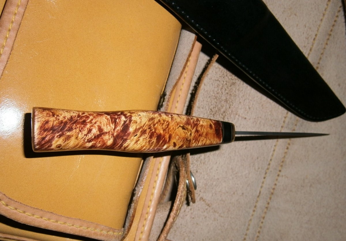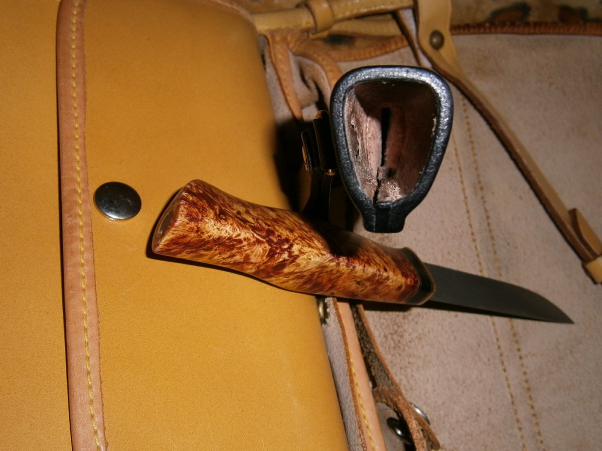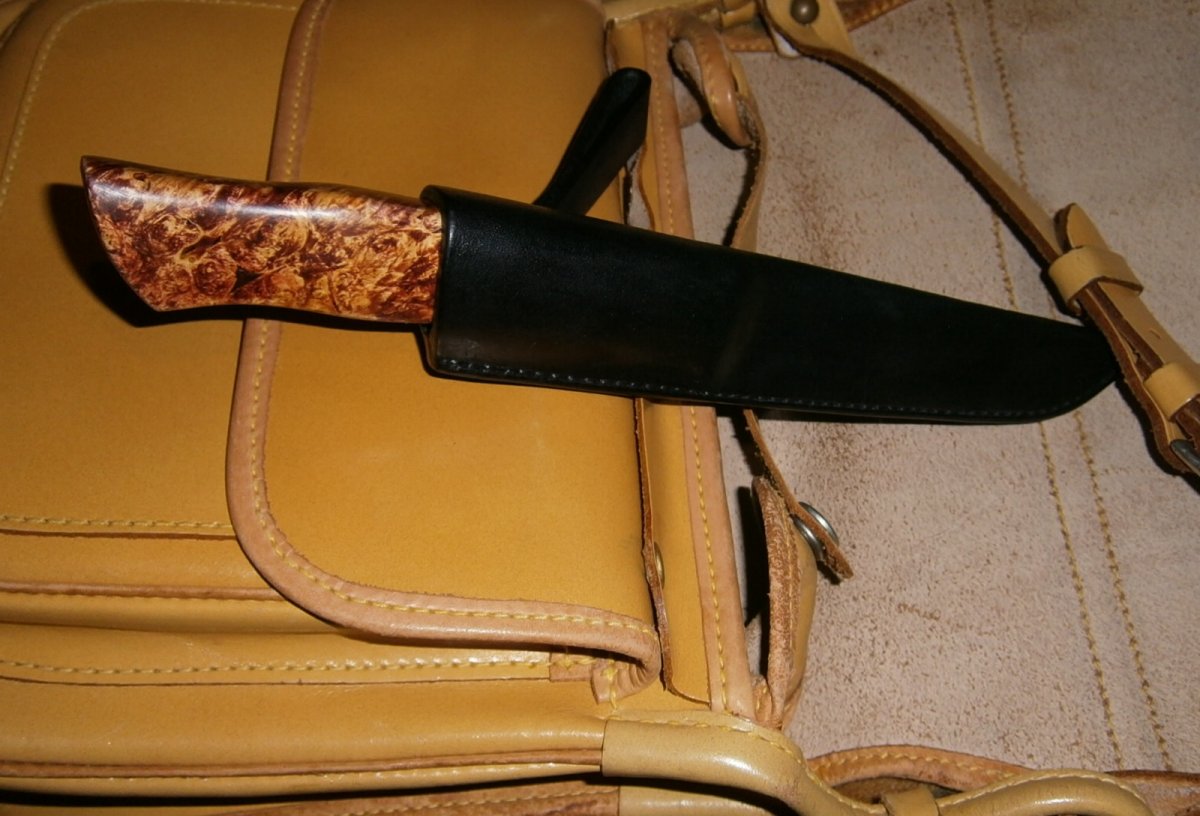 Новый, высококачественный нож «Гепард», профессиональной ручной работы, из стали (Х12Ф1) твердостью 60ед. Очень качественная и ювелирная работа по клинку и рукоятке, с идеальной подгонкой ножен.Рукоять стабилизированная, выполнена из дерева "кап клёна" тонированный. Нож без использования.