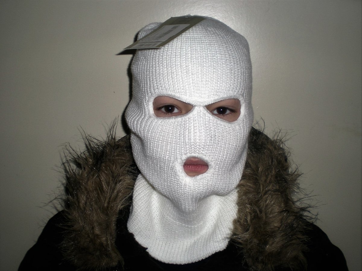 На балаклаве имеются 3 отверстия - для глаз и рта. Несмотря на то, что отверстие для носа отсутствует, дышать в ней легко и комфортно, так как материал, из которого она связана, «дышащий», пористый. Балаклаву рекомендуется надевать под каску или шлем. Она обеспечивает комфорт при их ношении.Есть чёрная и белая