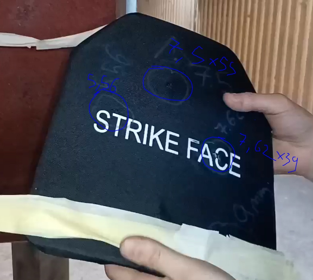 Додавати нічого, інформація про тестування від продавця наведена у фото. Він провів балістичні випробування калібрами: 223 rem, 7,62x39 та 7,5×55 мм GP11 і нічого не пробило.