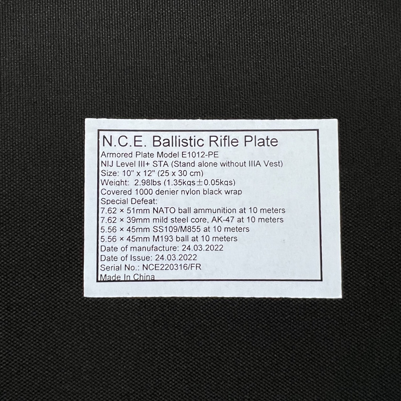 Перевага 100% твердої броньової пластини з HPPE полягає в тому, що вага набагато менша, ніж у керамічної балістичної пластини. Балістична пластина зі 100% HPPE може витримувати багаторазові удари в одній і тій же області, які знаходяться близько один до одного. Таким чином, ви отримуєте неймовірно легку та стійку до кількох ударів куленепробивну пластину. До того ж вона не боїться падіння.