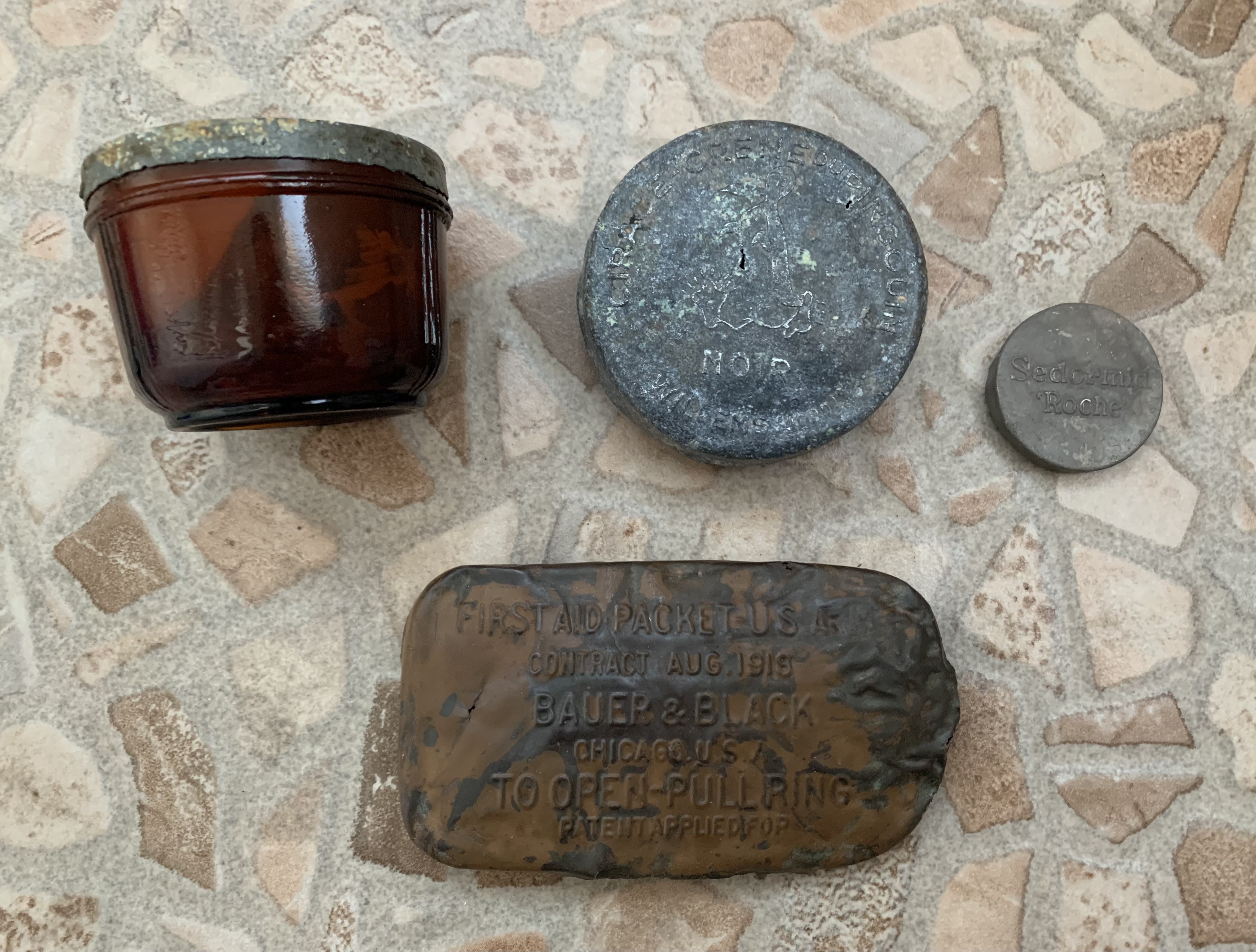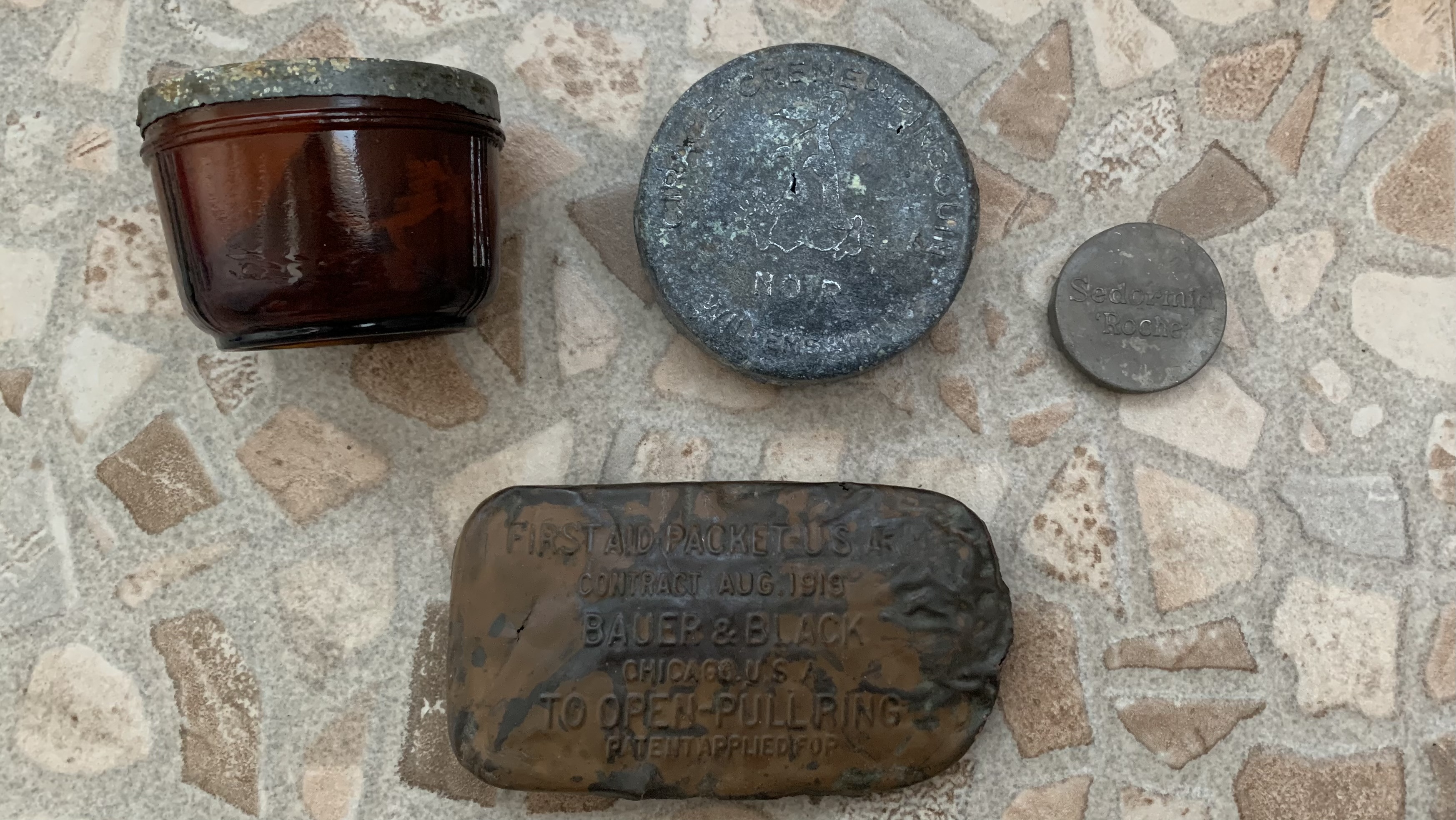 Скляна баночка знайдена в німецькому бліндажі, всередині залишалась мазь (запах як в солідола).
