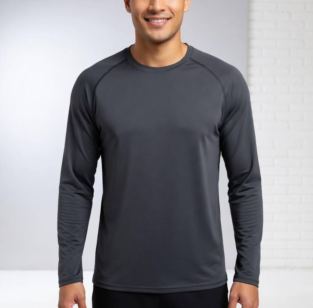 Влагоотводящие и быстросохнущие солнцезащитные свойства: Сохраняйте прохладу, комфорт и будьте готовы к солнцу с нашими мужскими спортивными футболками из влагоотводящей и быстросохнущей ткани, устойчивой к солнцу. Эти футболки с длинным рукавом идеально подходят для тренировок на солнце, будь то в спортзале, на пробежках или на работе. Футболки доступны в чёрном, белом, синем и оранжевом цветах, вдохновлённых солнцем. Благодаря передовой технологии Cool Dry Fit вы будете чувствовать себя свежим и сухим в любых погодных условиях.