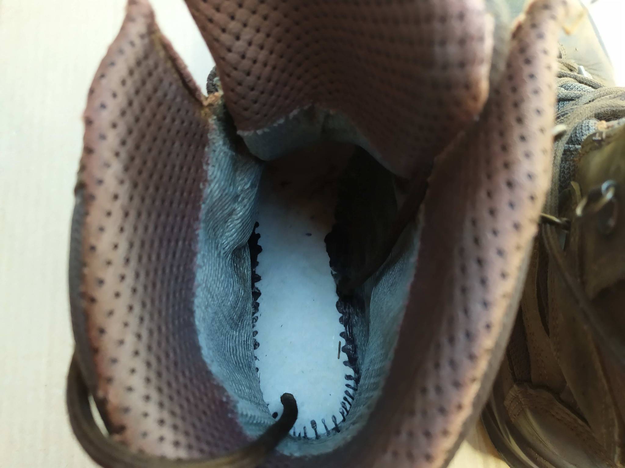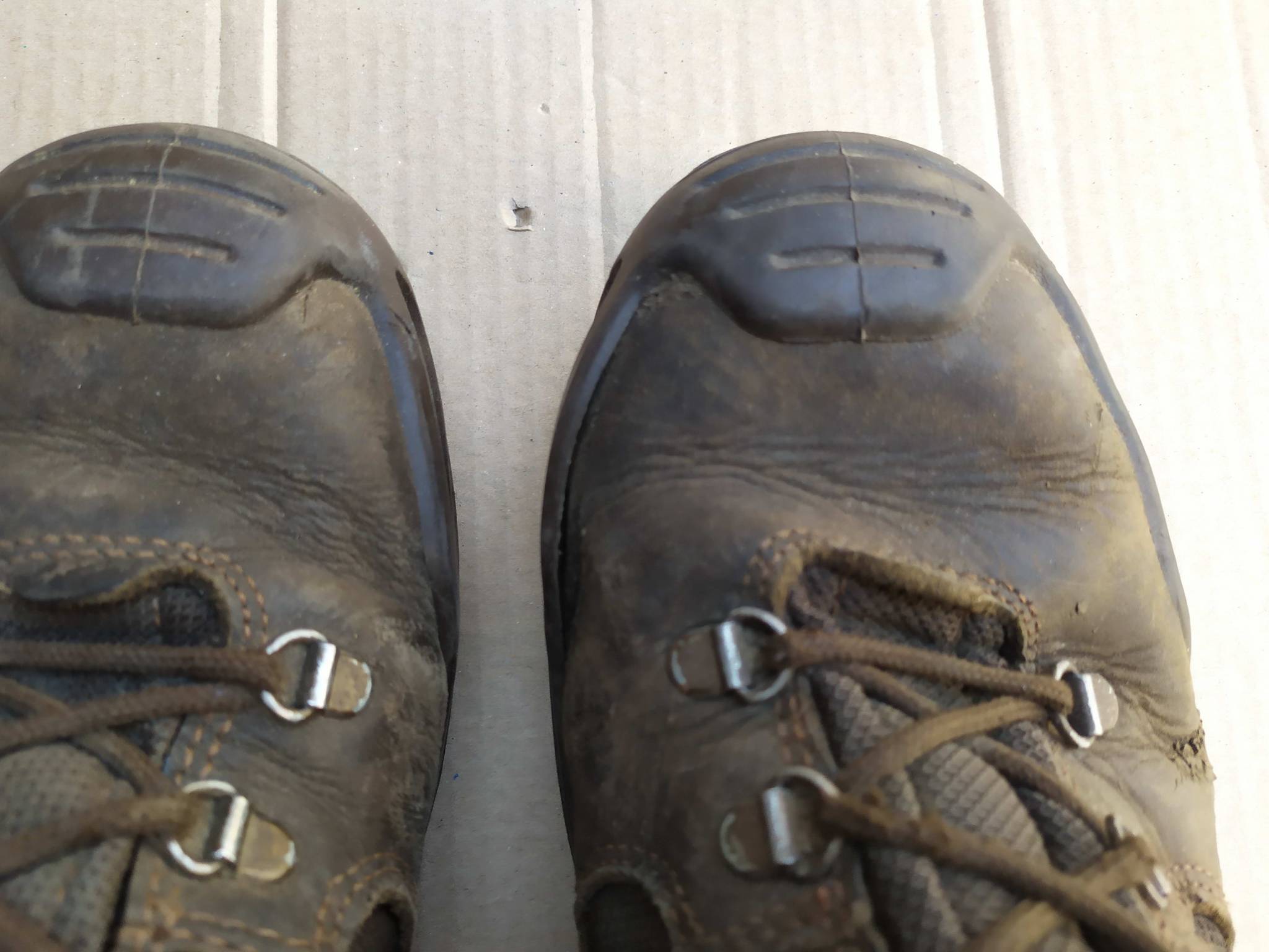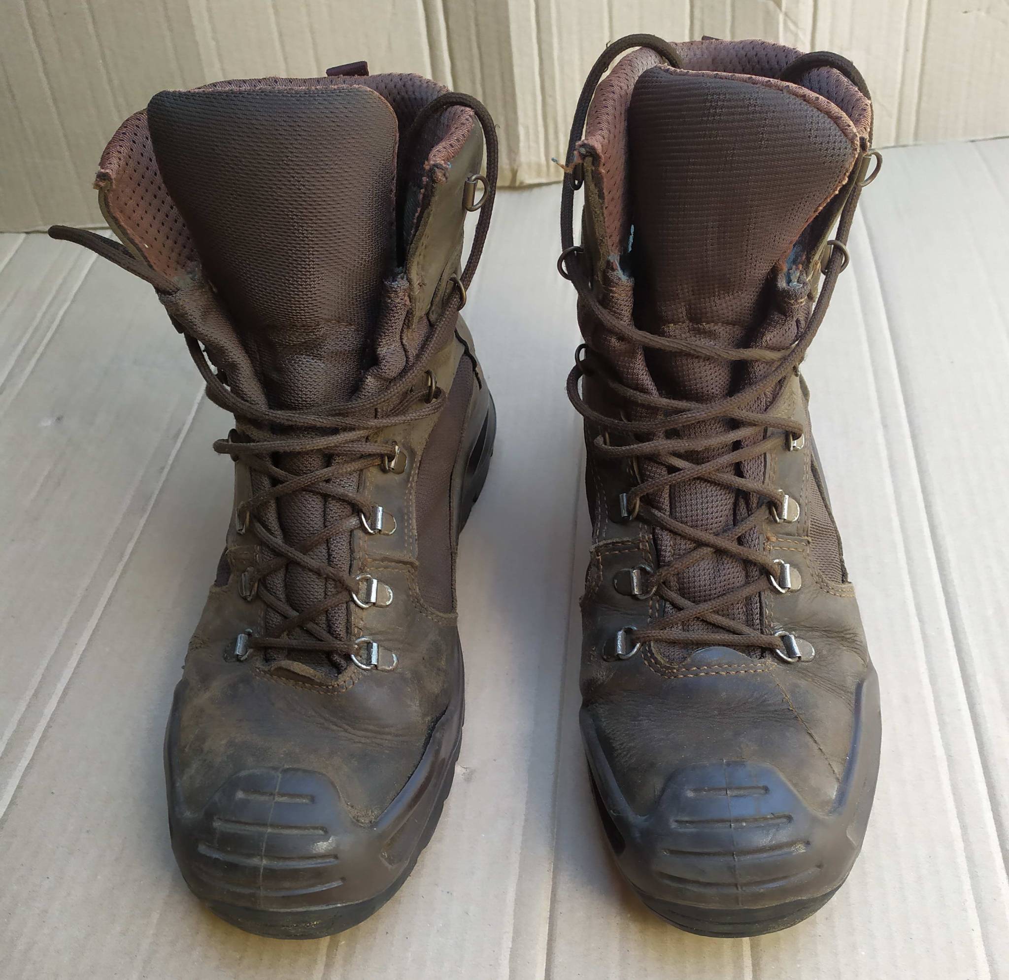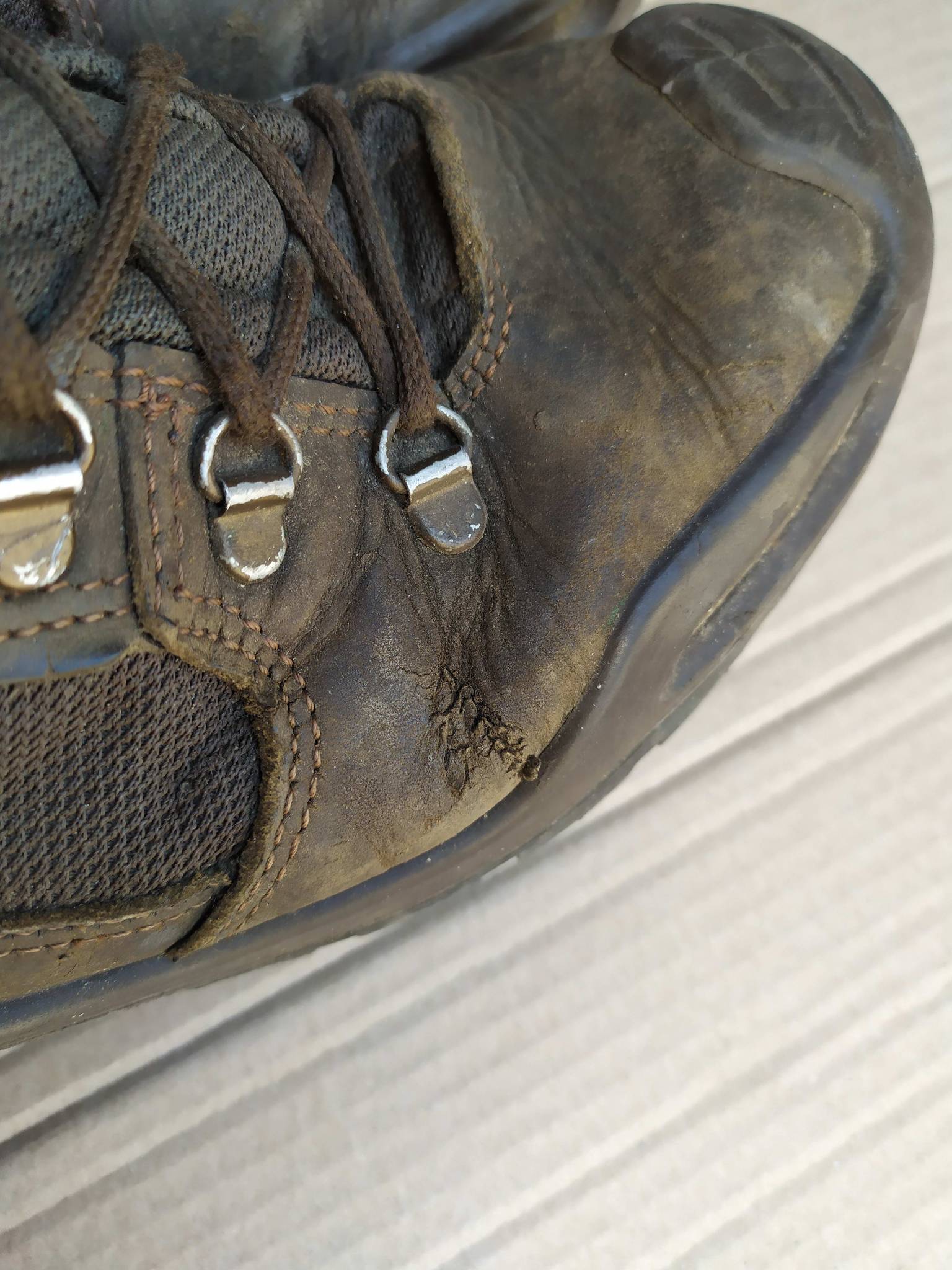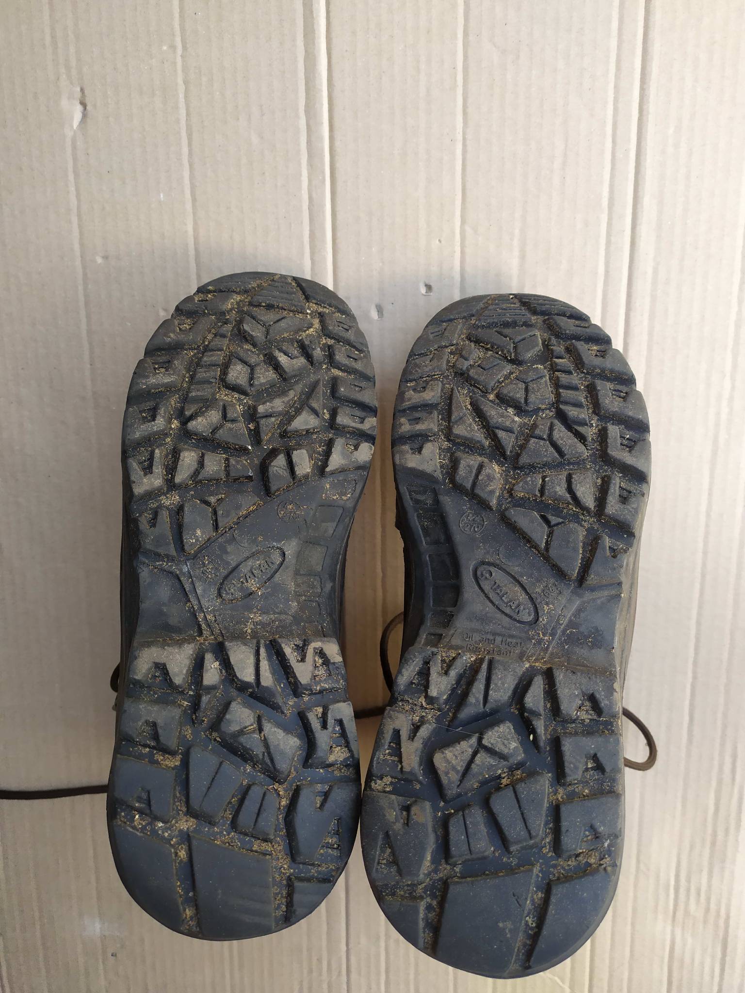 Состояние - б/у в рабочем состоянии. На правом ботинке отклеилась часть оребрения (фото). Обе стельки в комплекте, но под замену. На сколько держат воду - не знаю, не проверял.