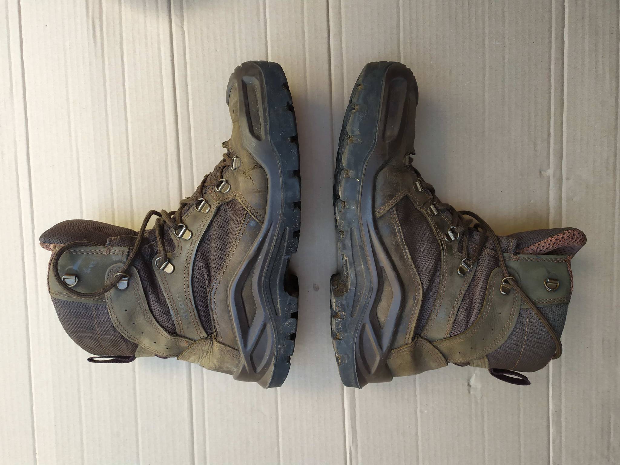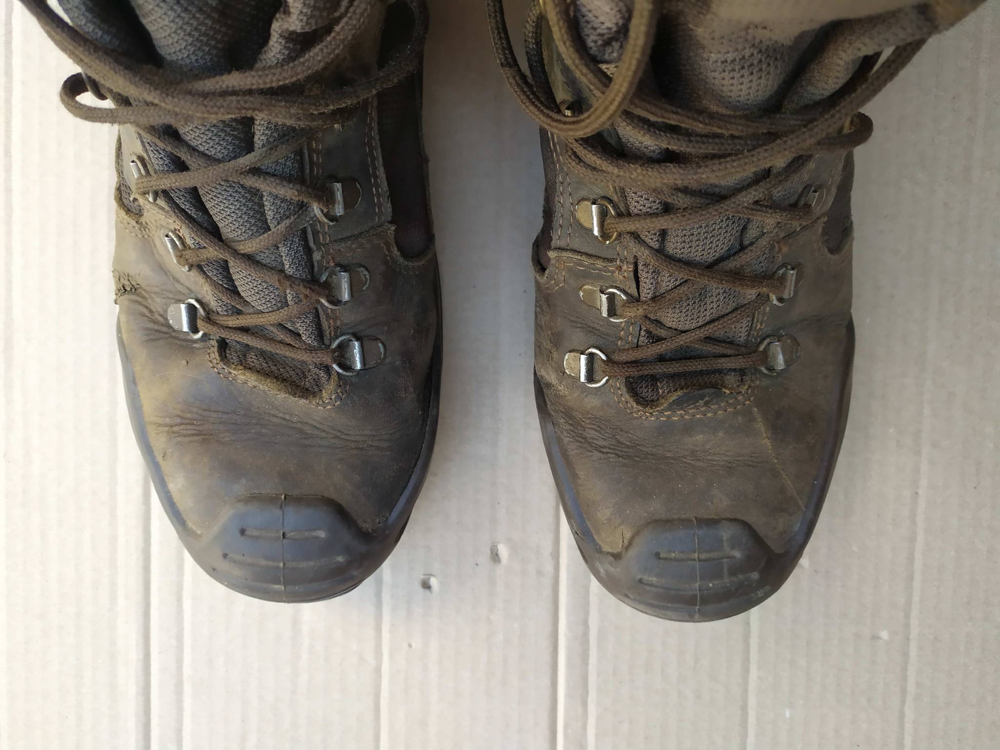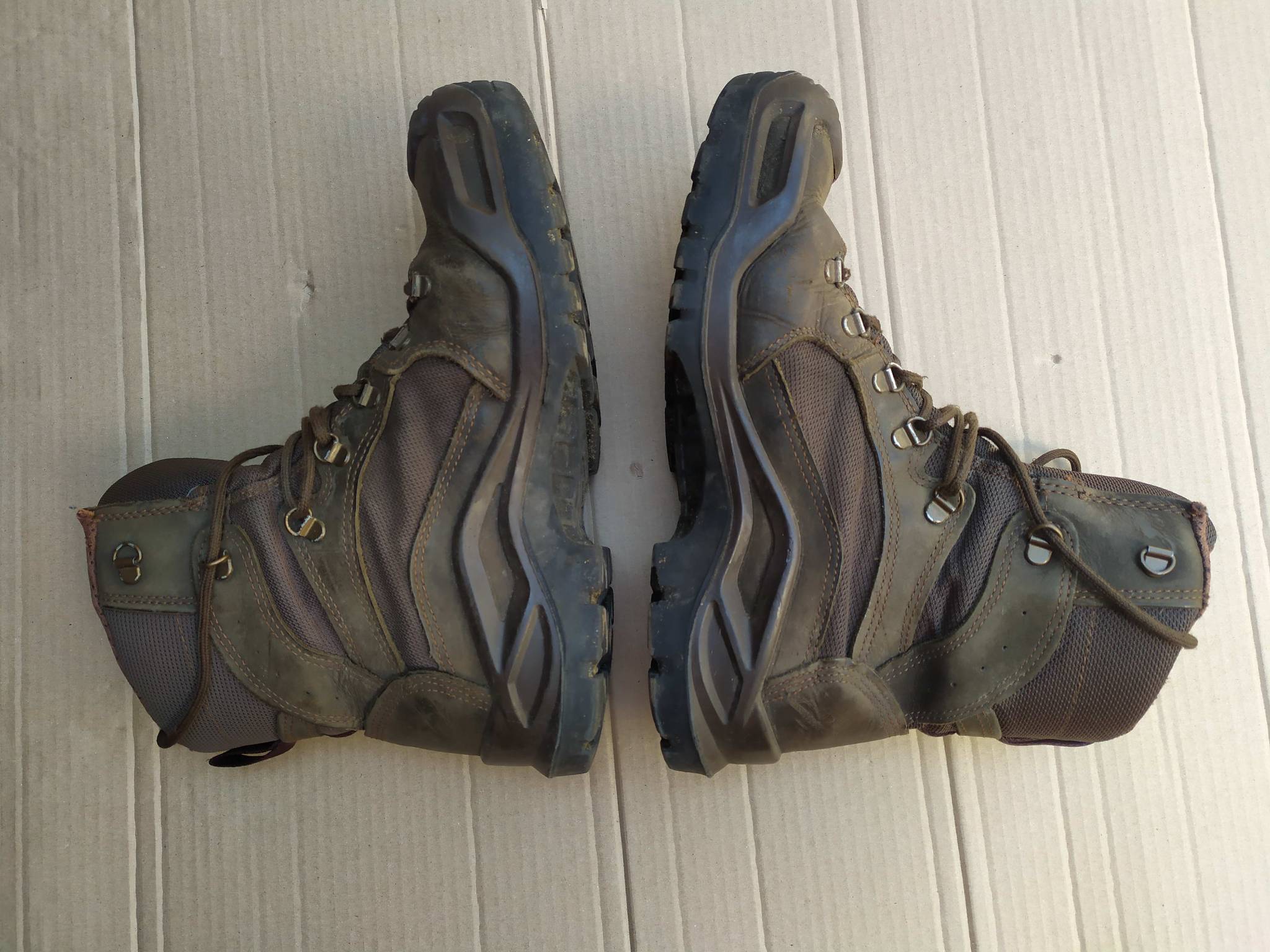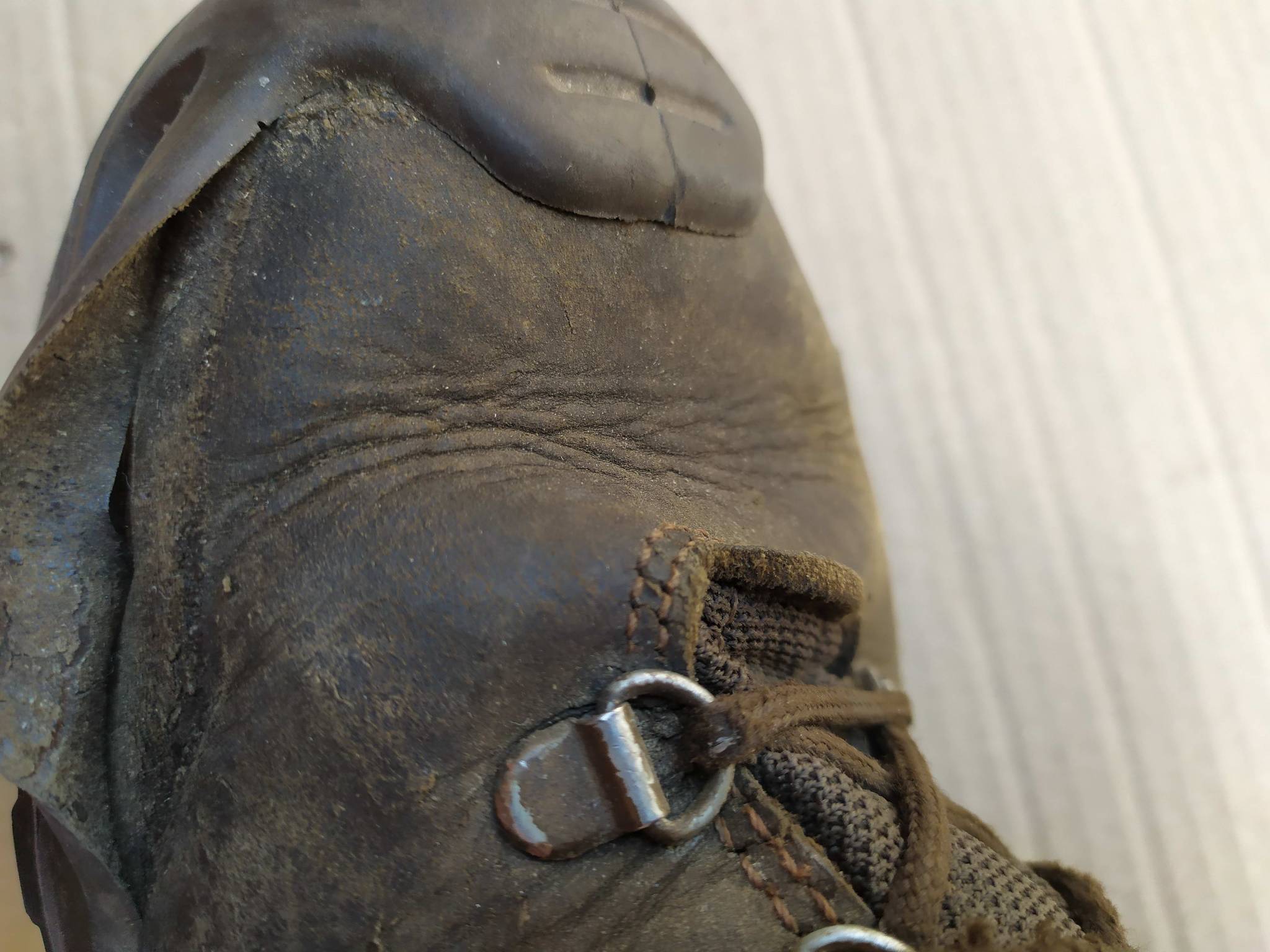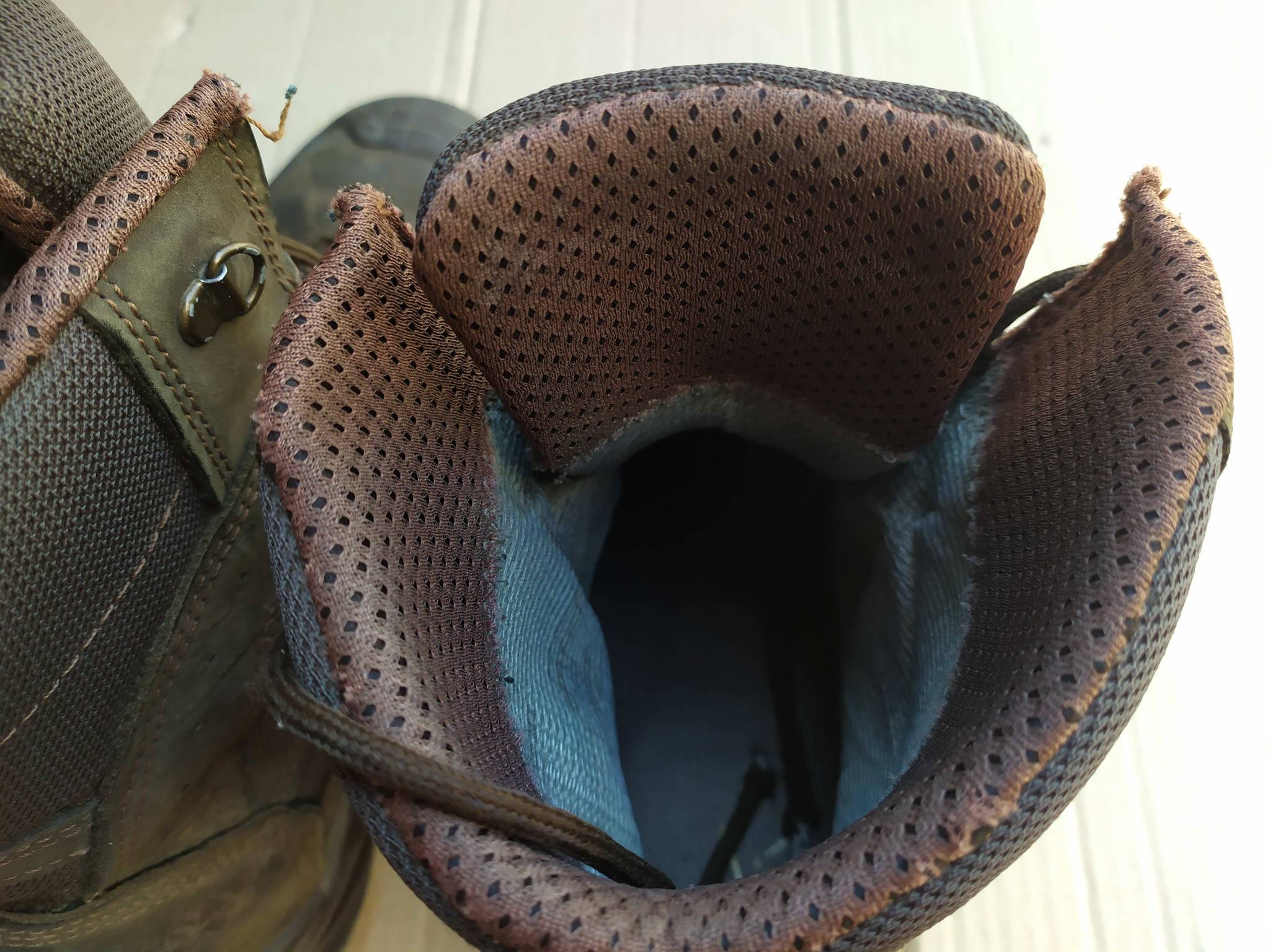 Состояние - б/у в рабочем состоянии. На правом ботинке отклеилась часть оребрения (фото). Обе стельки в комплекте, но под замену. На сколько держат воду - не знаю, не проверял.