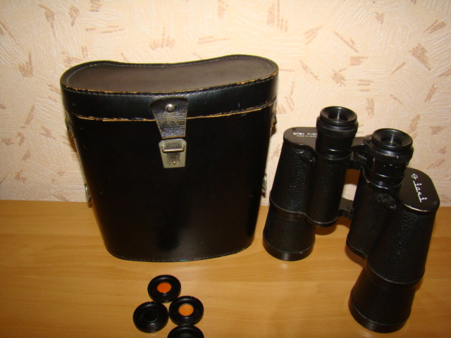 Сетки- нет и не было. Комплектация на фото- бинокль, кофр (кожа) без ремешка и защелки!, ремешок к биноклю, 2 пары светофильтров (зеленые, желтые). 1971 года выпуска Загорский ОМЗ.
