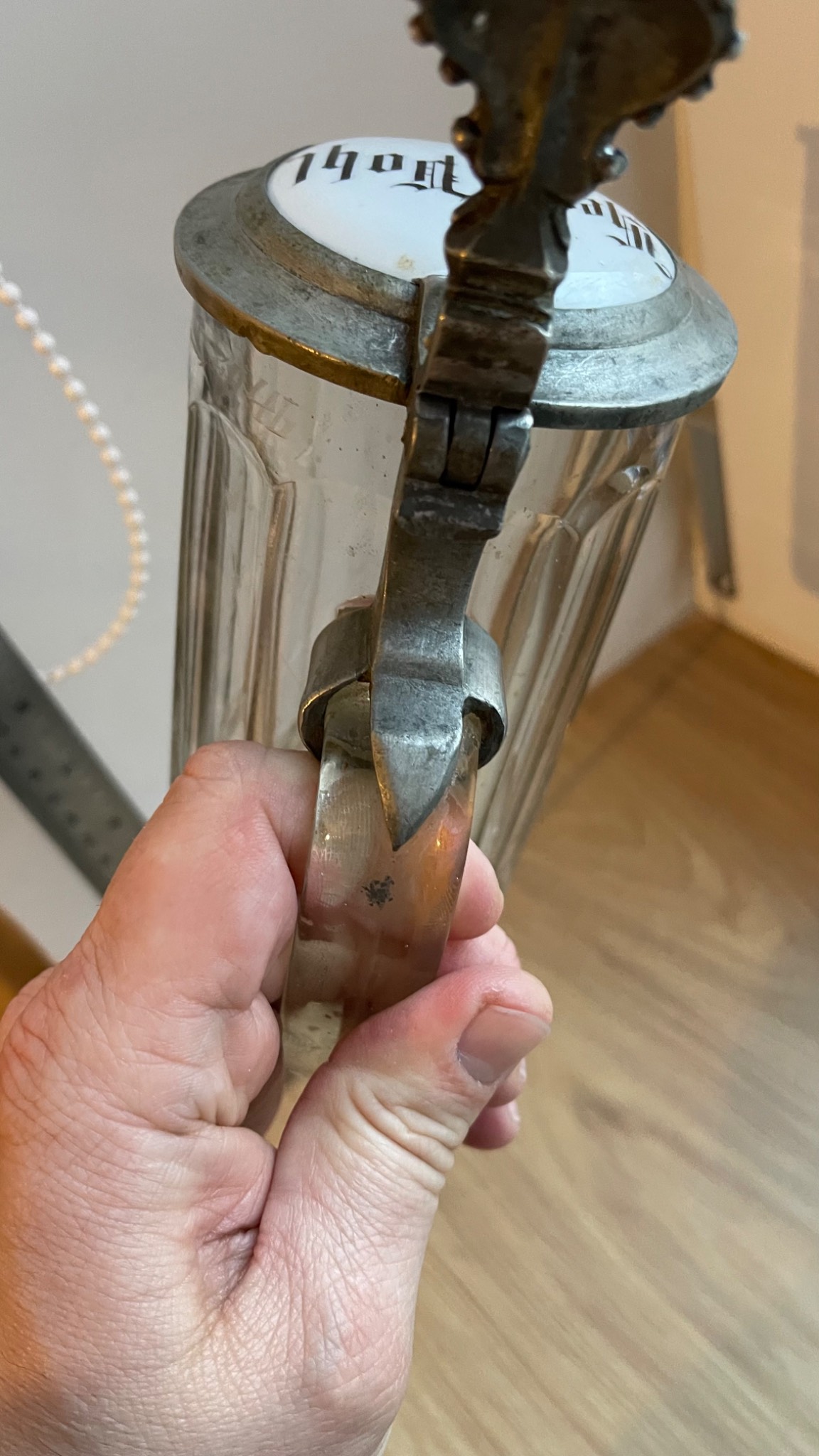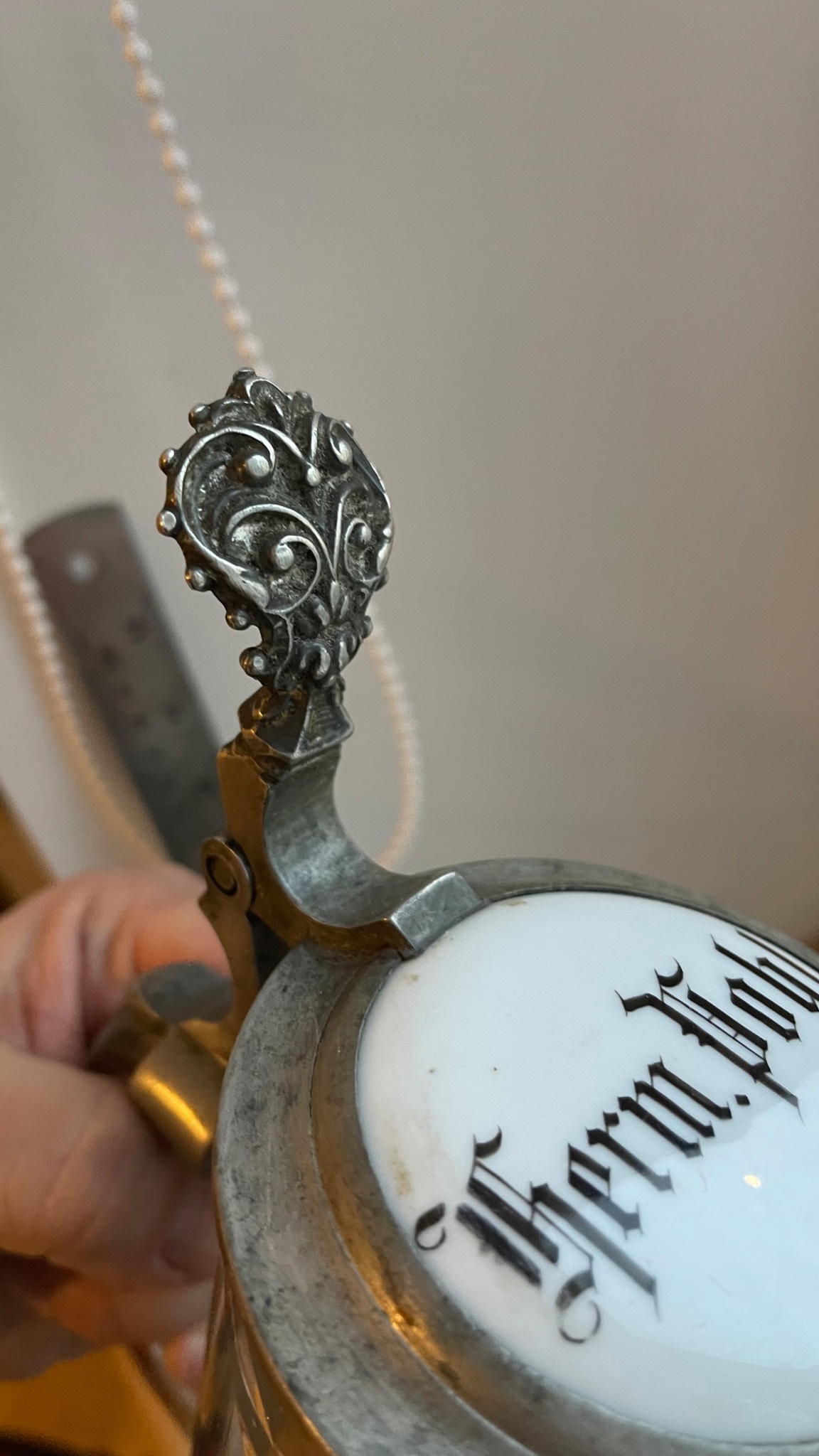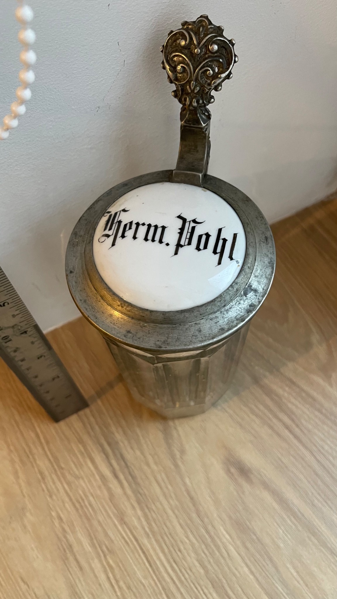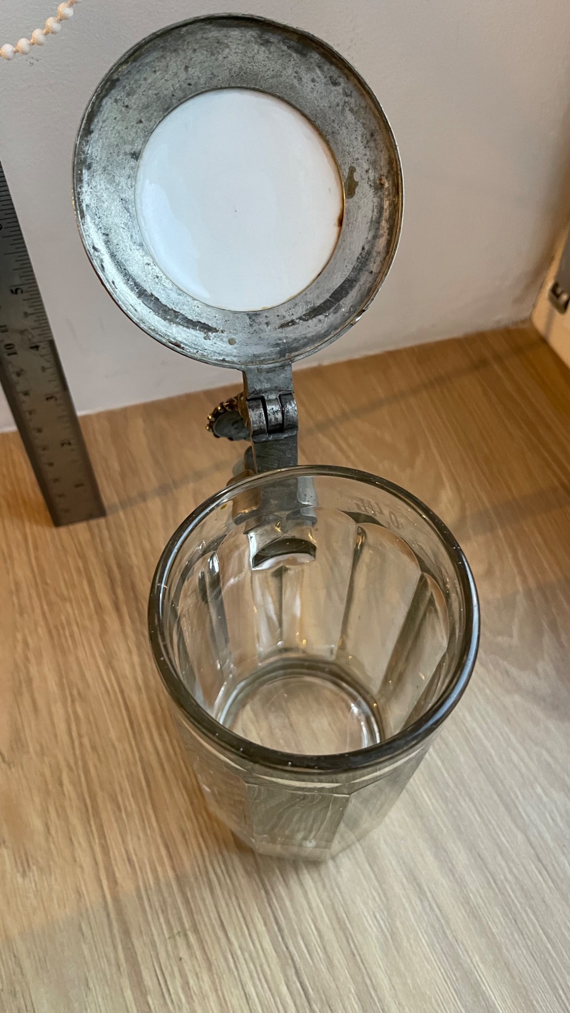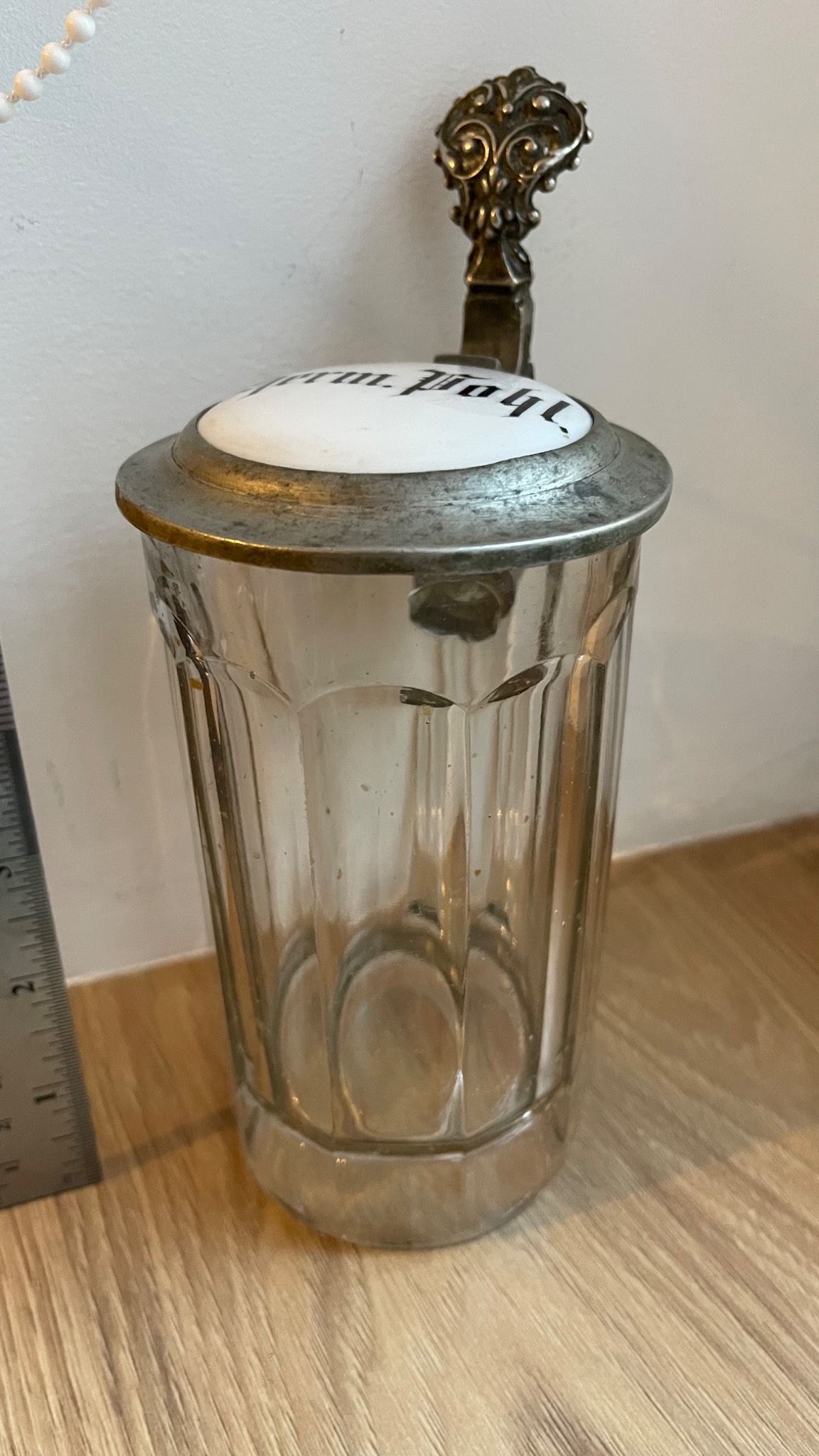 Подам старовинний пивний бокал в гарному стані. Все, як на фото. Без ремонтів та реставрацій. Ємність 0,4 літра. Порцелянова кришка з написом в готичному стилі. Висота 16 см. Прикрасить будь яку колекцію! Чудовий предмет на подарунок! Сміло можна використовувати за прямим призначенням. Територіально Львів.