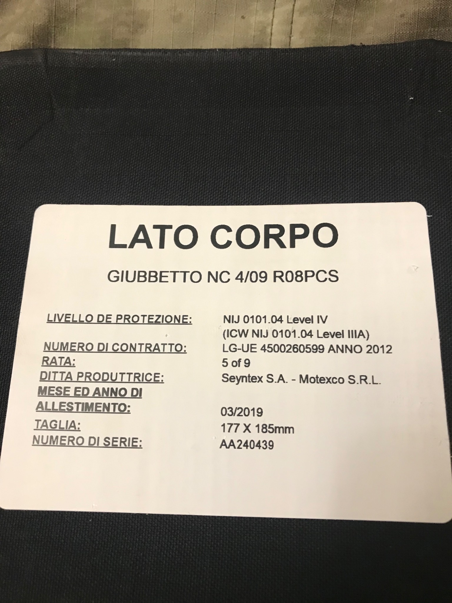 Бронеплита Боковые бронеплиты Lato corpo Италия. Новий
