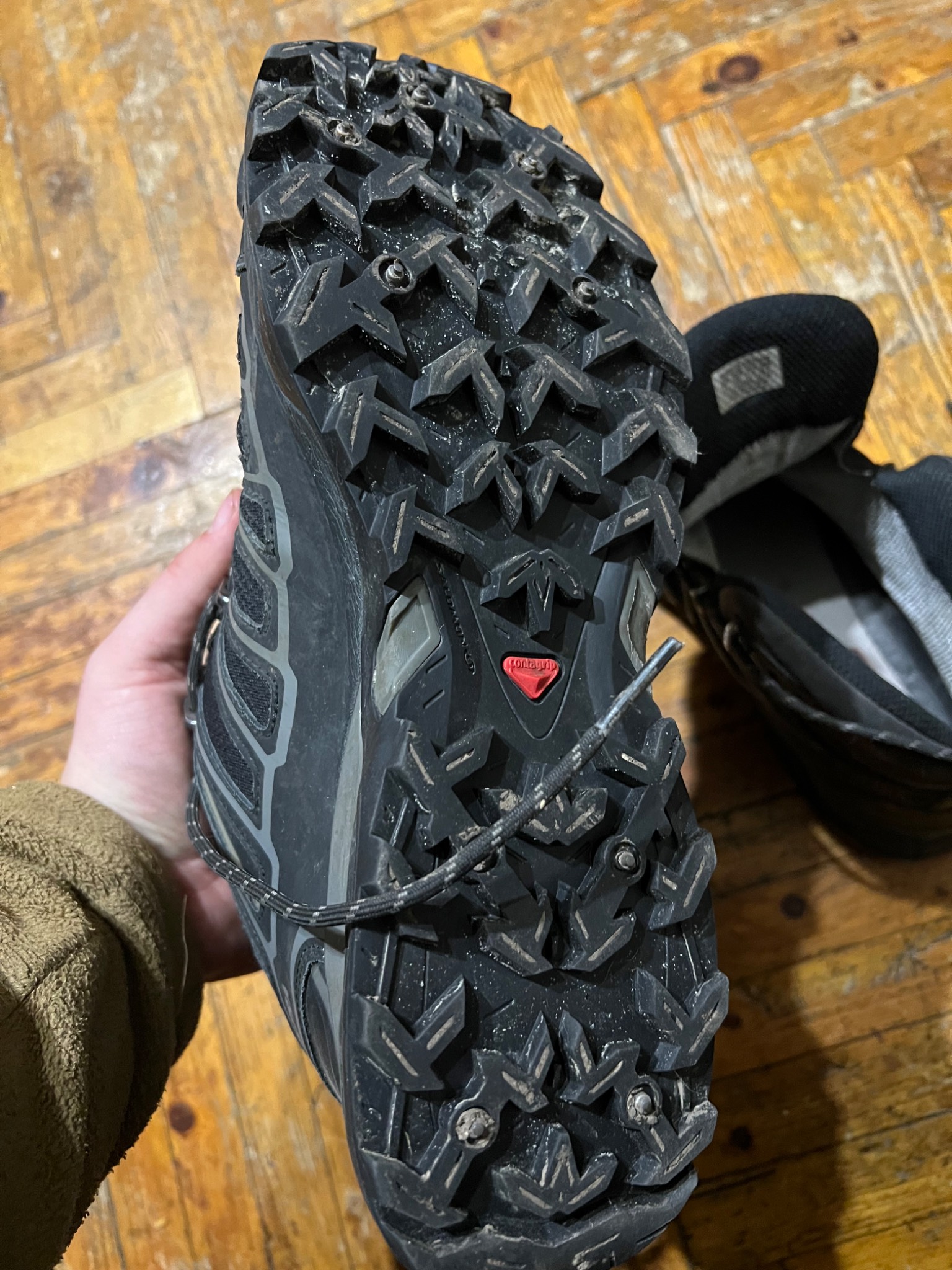Ботинки salomon с шипами. Б/у Отличные удобные. Состояние твердая 4+