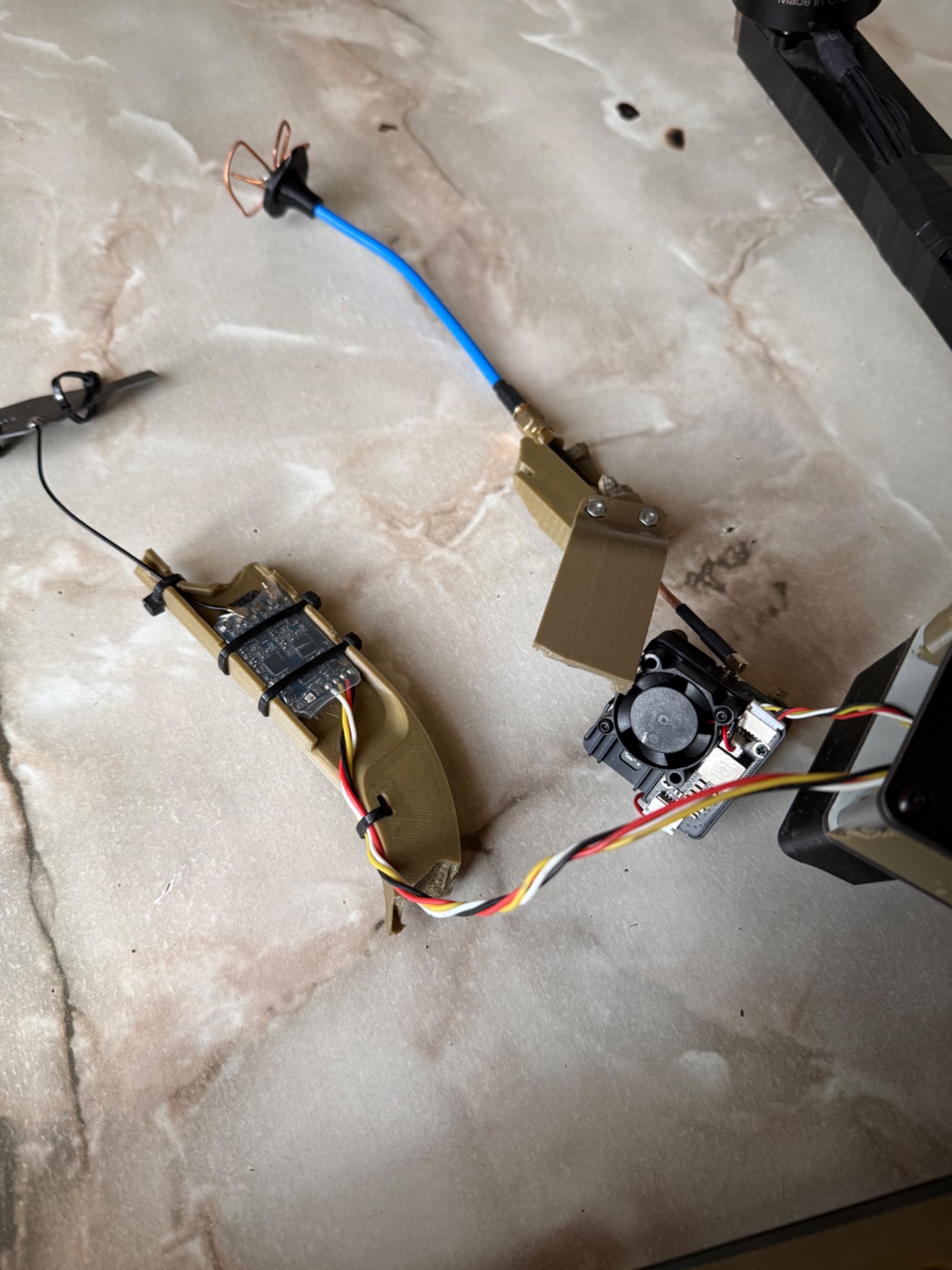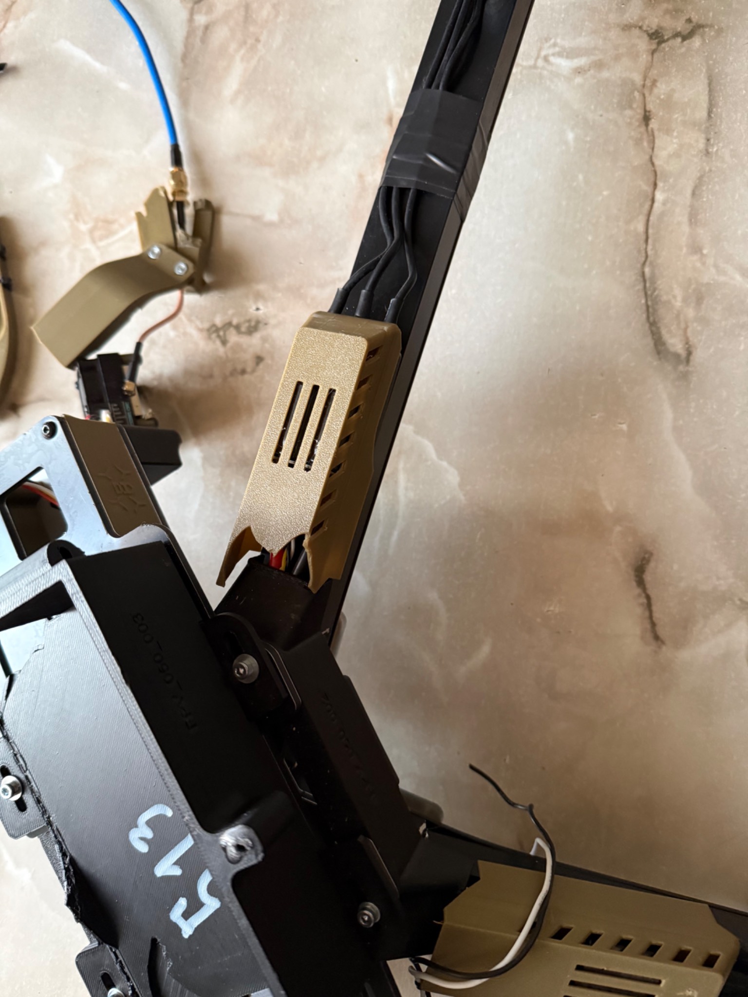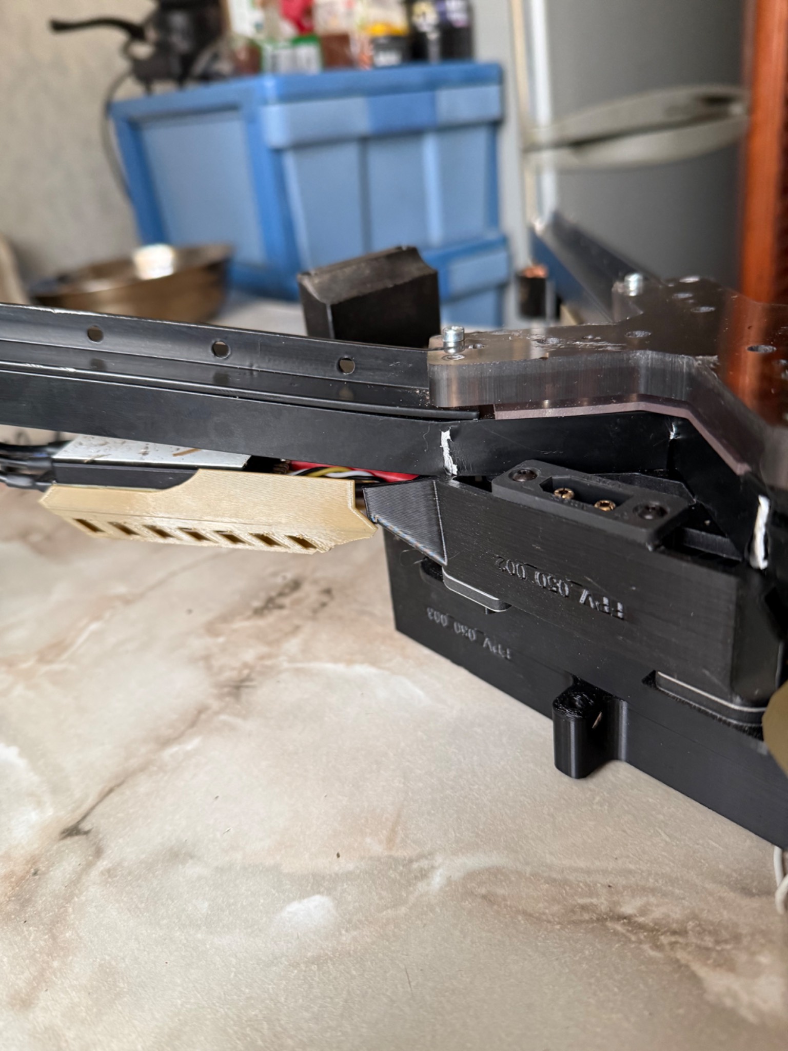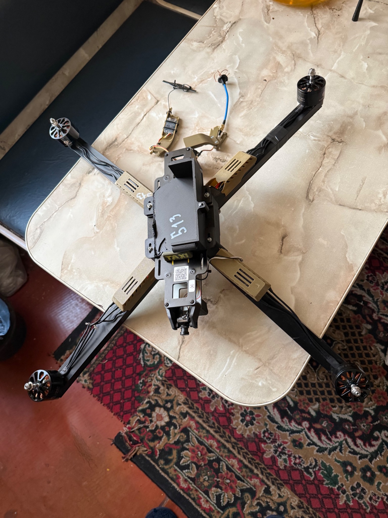 БПЛА з цілою електронікою, та пошкодженою при ударі рамою, яка складається з двох алюмінієвих профілів, де які запчастини надруковані на 3Д принтері теж мають пошкодження, двигуни крутяться, на одному двигуні перебиті провода(на фото). Рама акуратно знята, більше нічого не розбиралось. Всі недоліки на фото!