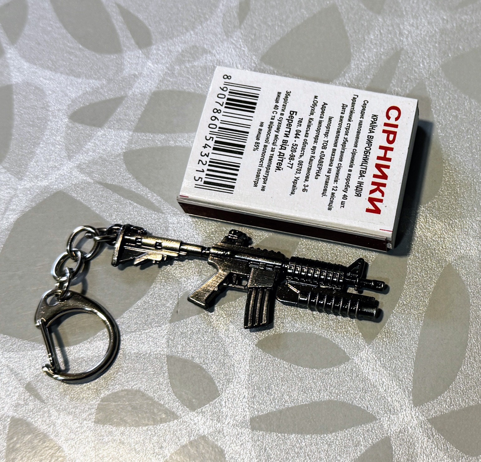 Гарний брелок на ключі у вигляді AR15 з підствольним гранатометом.