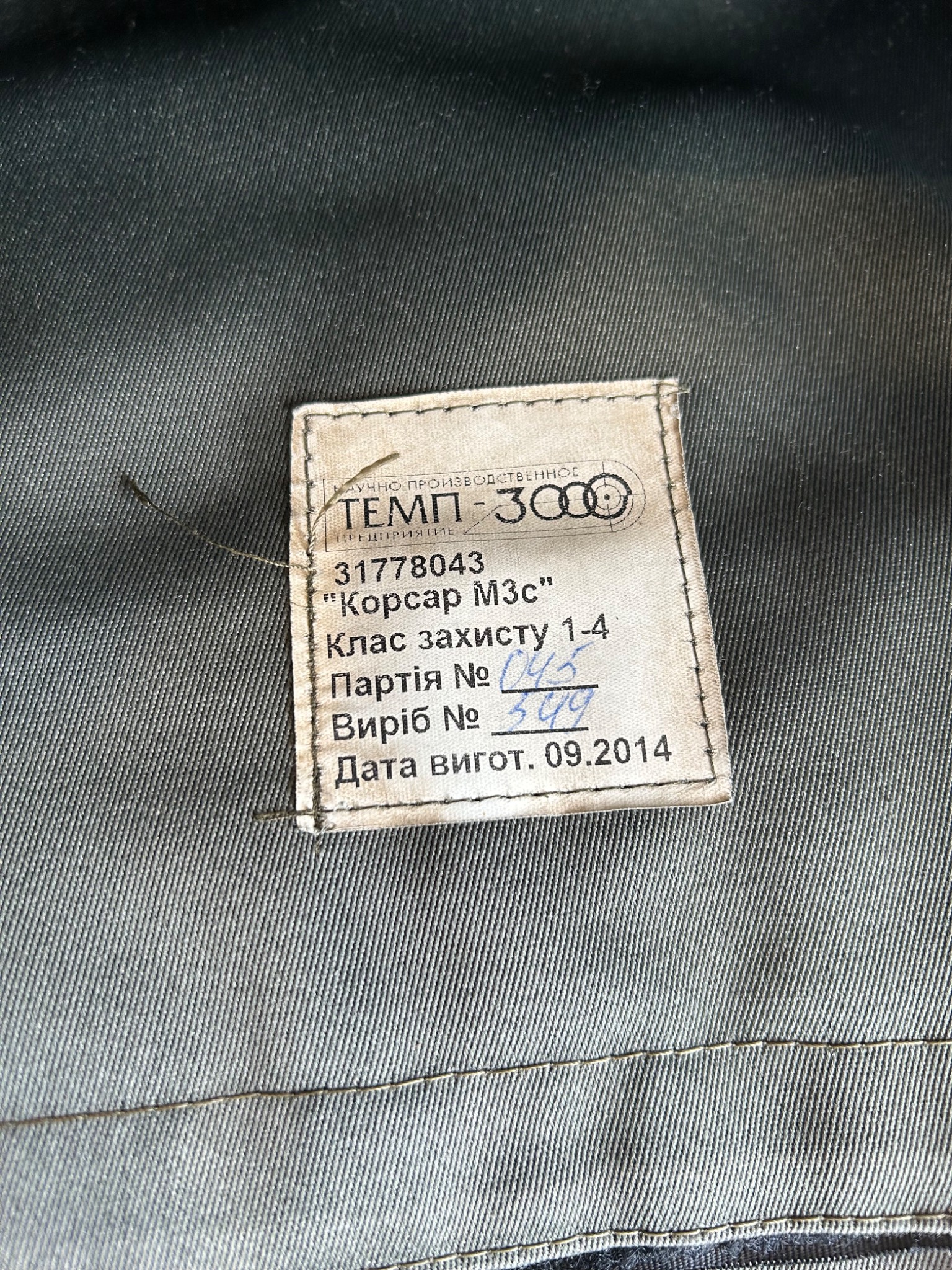 У лот входить сам чохол, Кевларовий захист шиї, плечей, горла; Кевларовий захист паху; броні та балистики нема