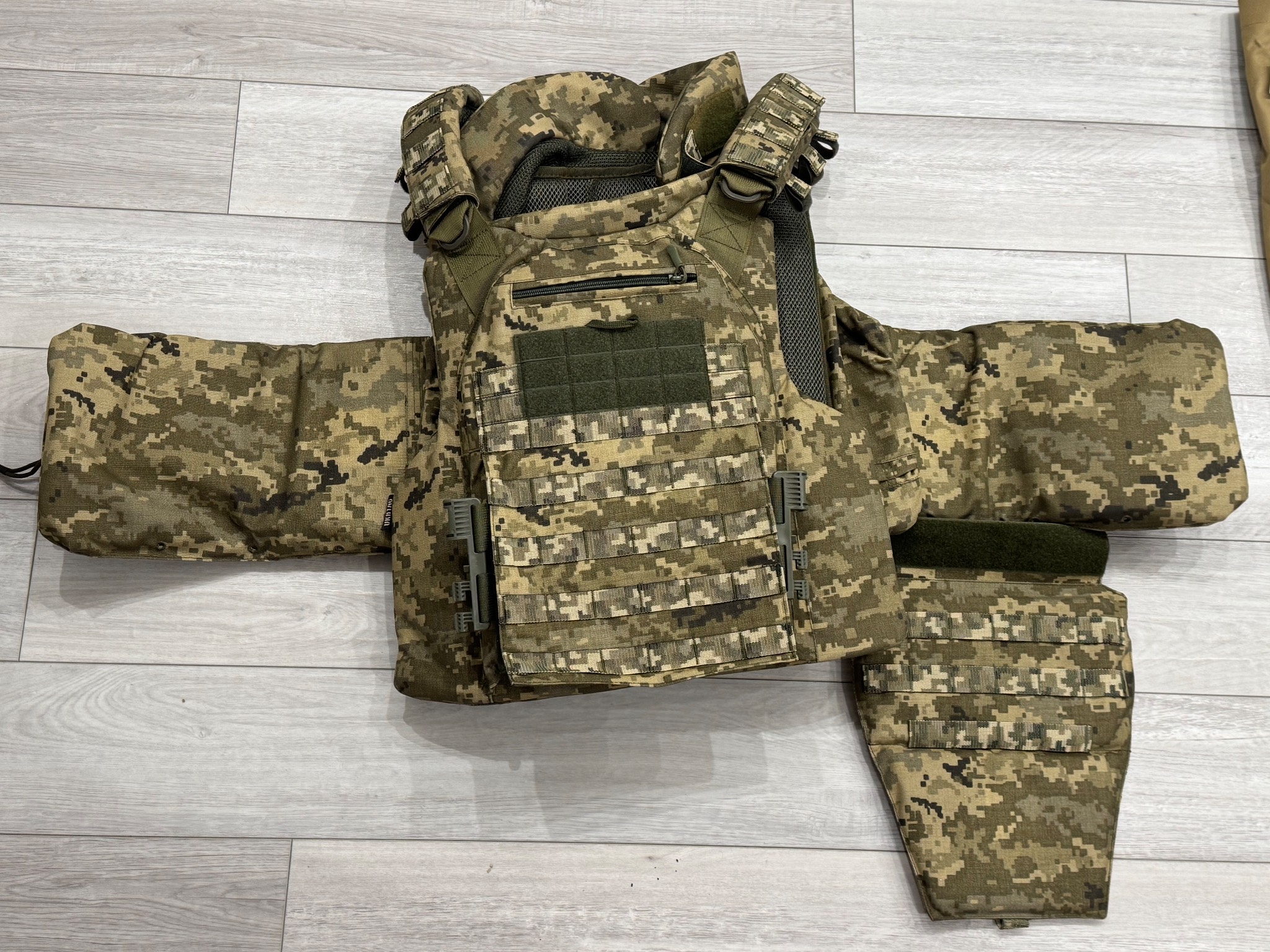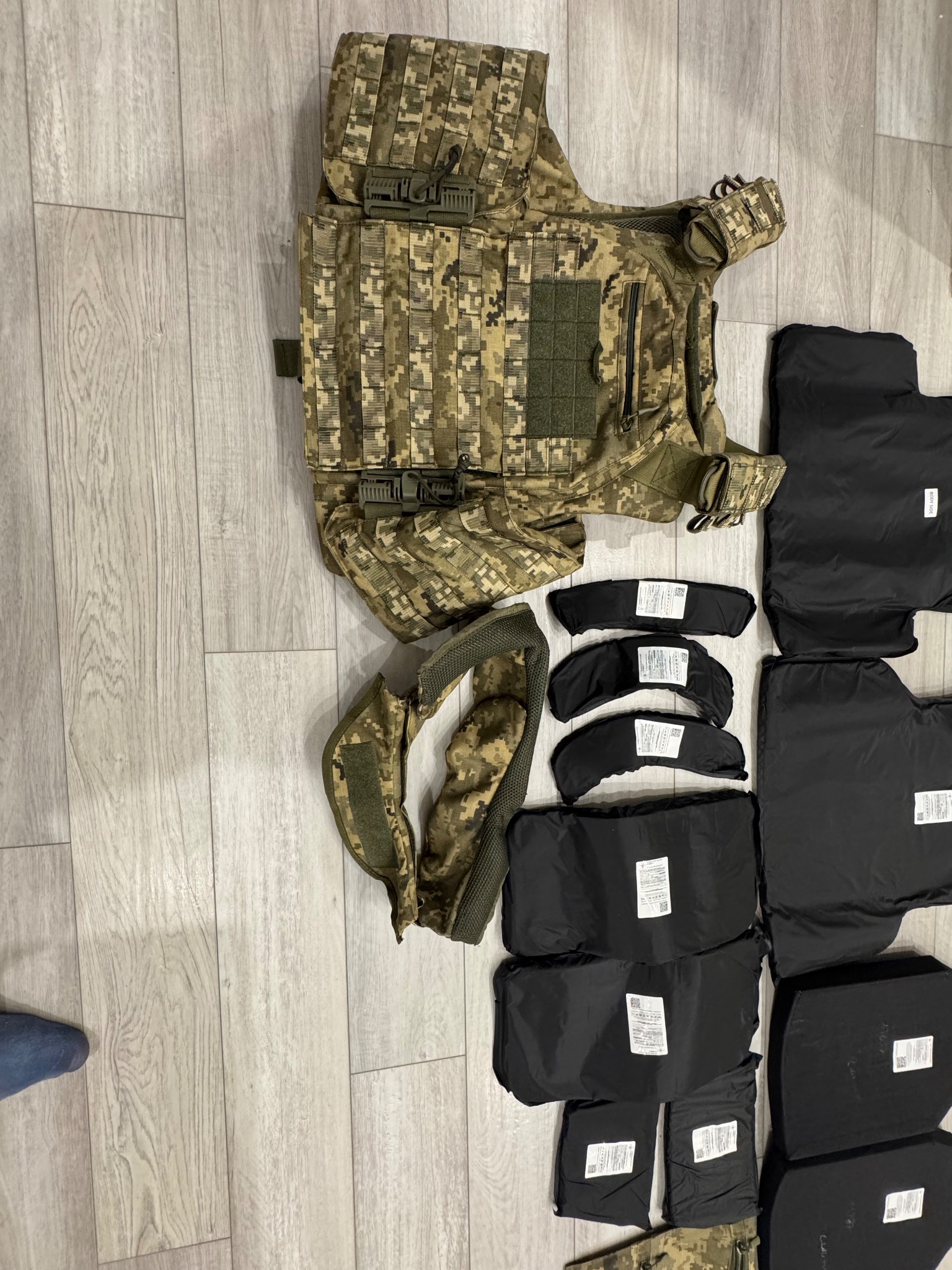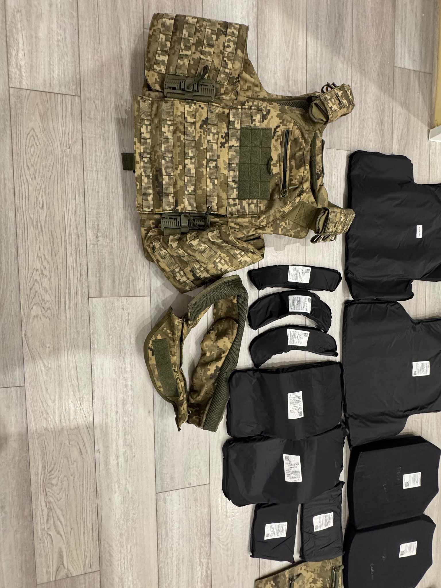 Все нове , розмір L , дивіться фото, дві точки скиду, загальна вага всього бронежилету з плитами та балістикою 13 кг , клас захисту 6 , продаж одним лотом . Дивіться фото , та інші мої лоти.