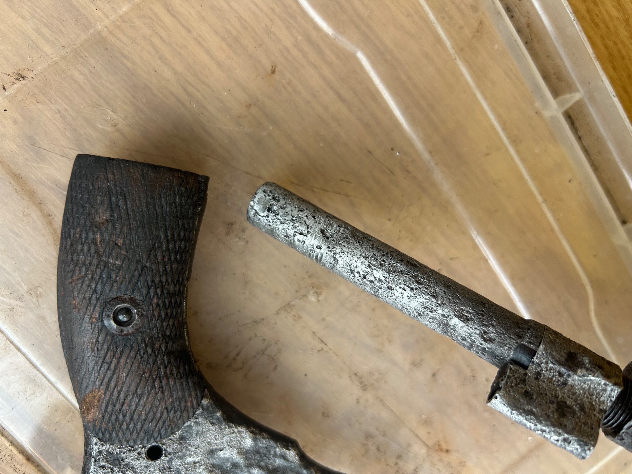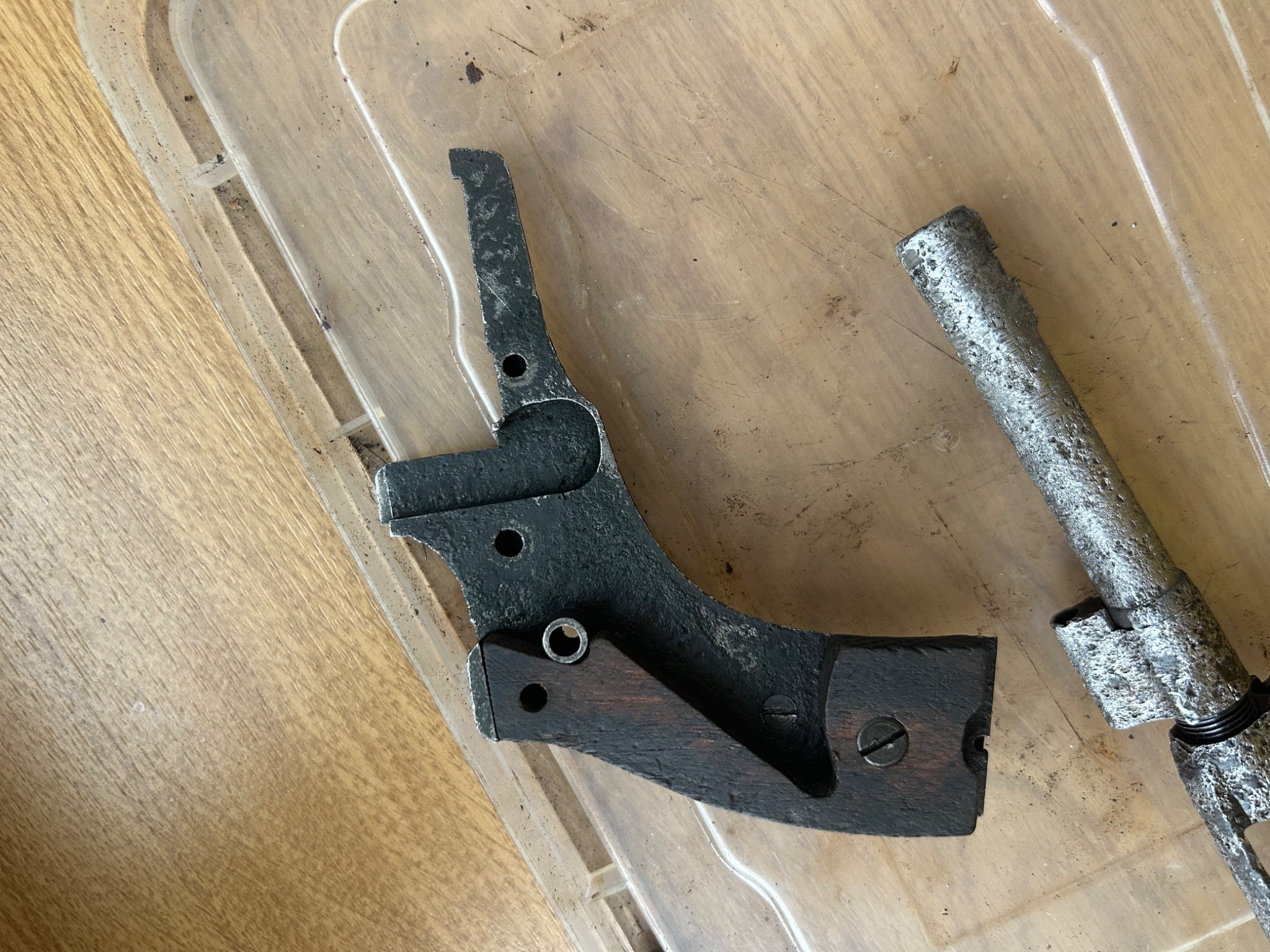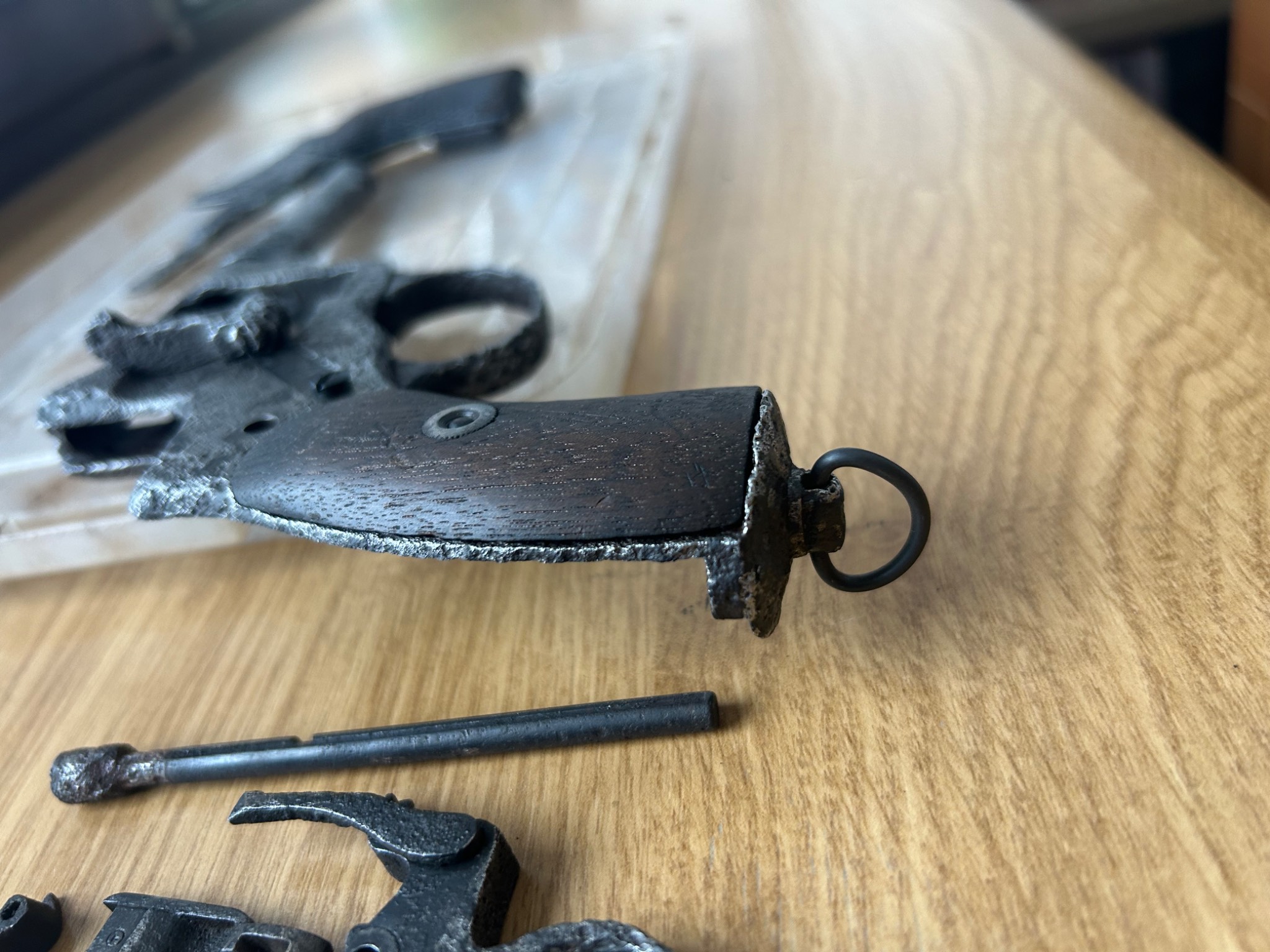 Наган цар солдат на молотках , доволі непоганий стан під схп , комори барабану нові так як був копаний з патронами в барабані - деактив два штифта, один під мушкою , другий під тримачем шомпола