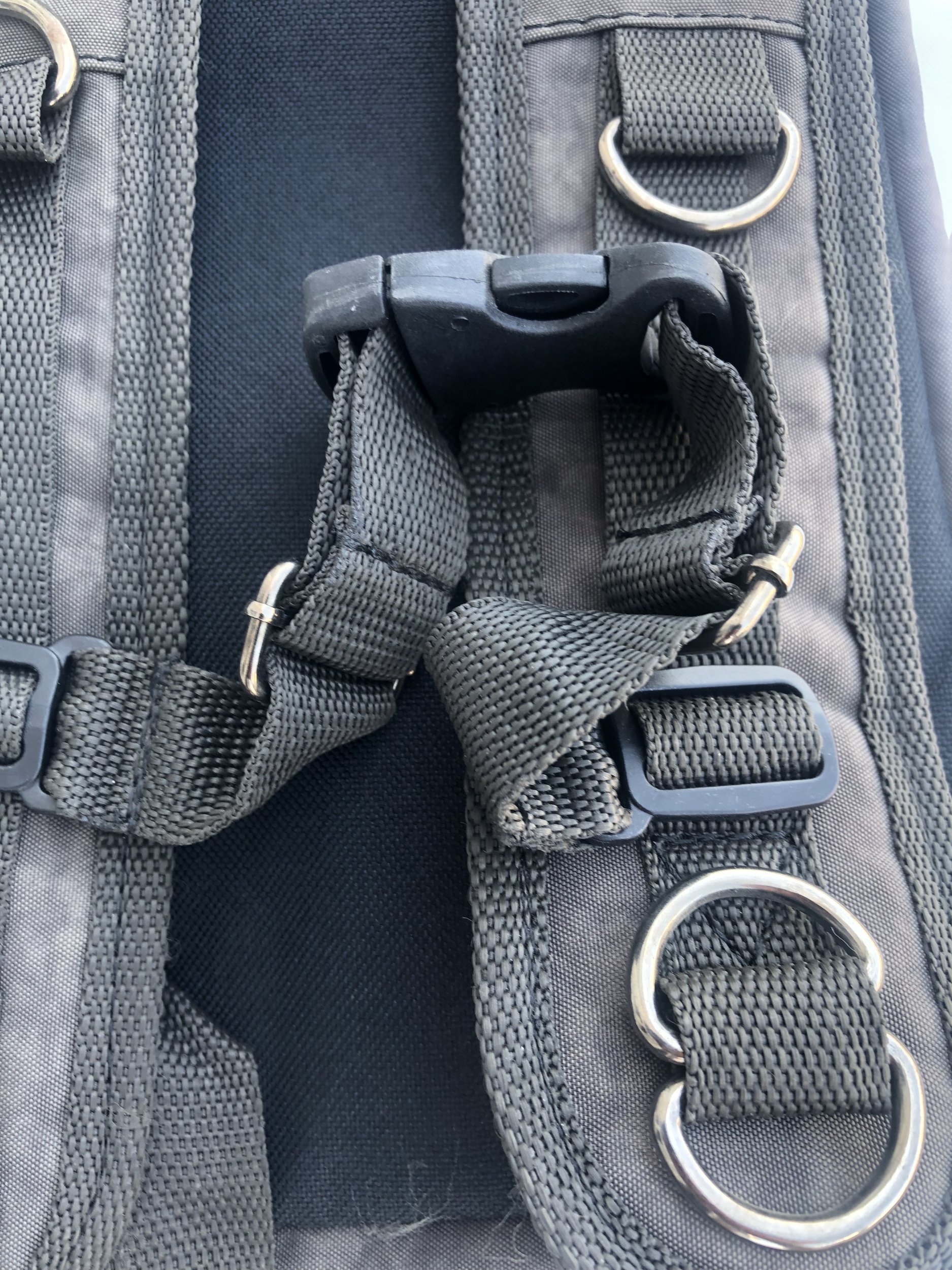 Три отделения, среднее для медузы, одно для шланга, и одно для личных вещей; можно использовать как маленький рюкзачок ; медуза есть, но пришла в негодность