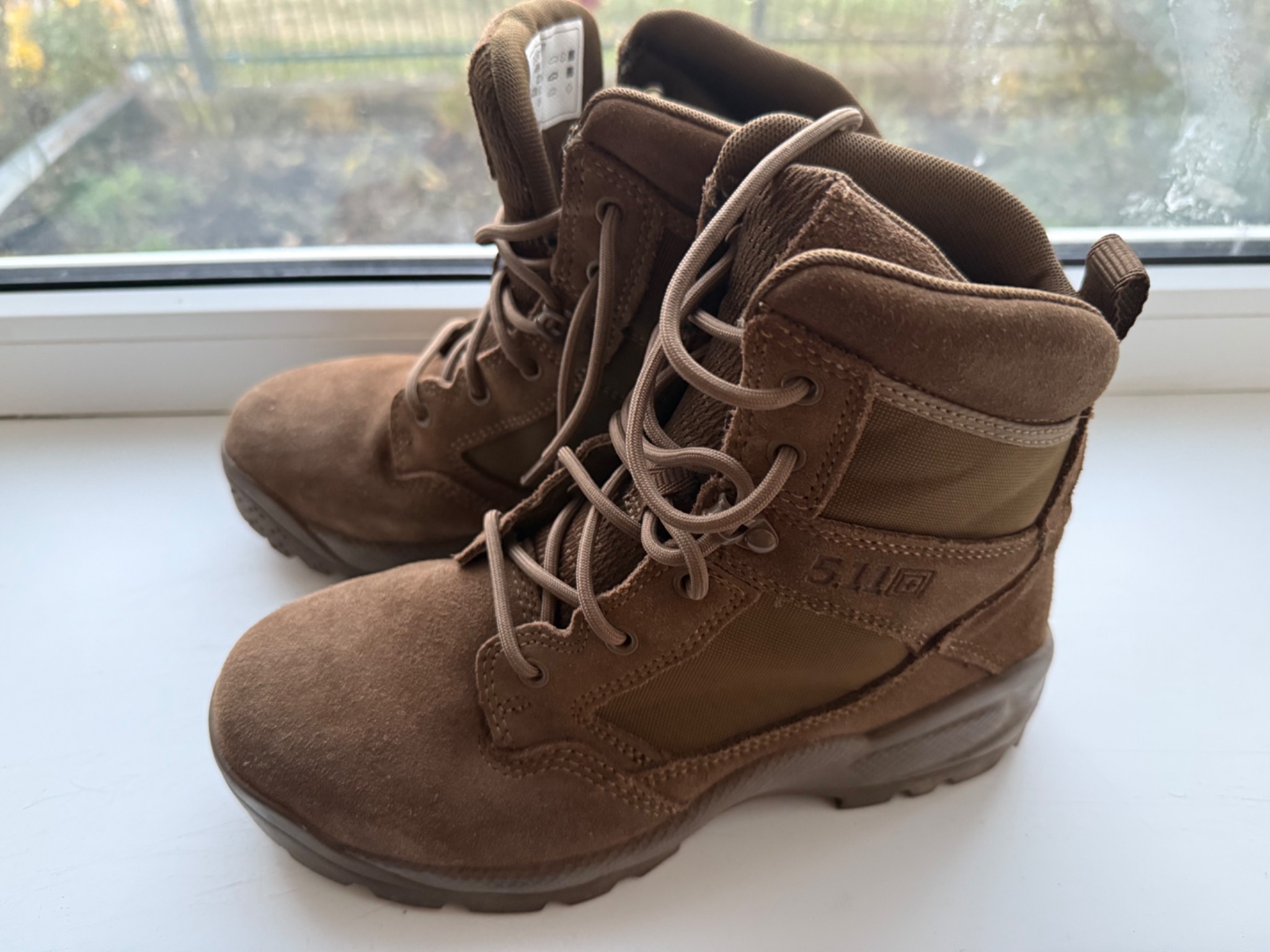 Тактичні черевики серії 5.11® A.T.A.C. носять провідні працівники громадської безпеки по всьому світу. Вони мають висоту 6 дюймів (15,2 см) та оснащені застібкою-блискавкою збоку, яка допомагає швико вдягнути/зняти черевики не розшнуровуючи шнурівку. Це легка, зручна та міцна модель тактичного взуття. Новий сітчастий язичок та подвійна устілка Ortholite® на всю довжину взуття забезпечують прохолоду, сухість і комфорт ваших ніг протягом усього дня, щодня. Ще одна нова функція, зона гнучкості ахіллесової п’яти, надає важливій частині вашої стопи більший діапазон рухів без шкоди для підтримки. Грубий замшевий носок, верх з нейлону 840D і система пом’якшення ударів забезпечують надійний захист, який вам потрібен.